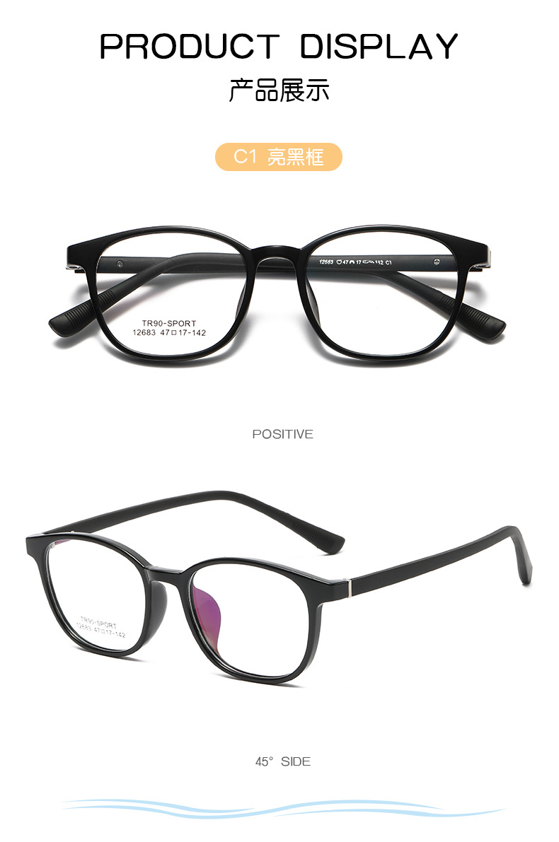 韓国版tr90角型メガネフレーム男女同一トレンド2色近視度数光学フレームメーカー卸売り