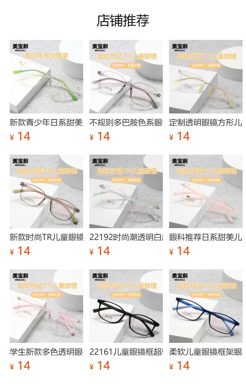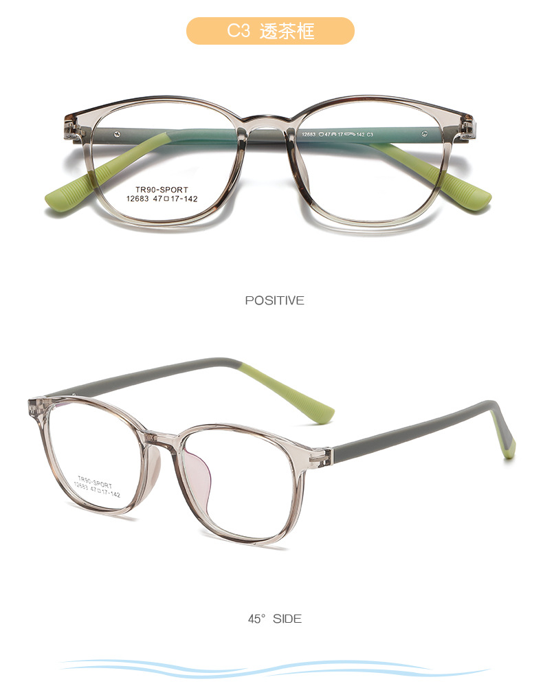 Tr90青少年学生キャンディー色近視弱視眼可配度数実体店児童光学眼鏡枠