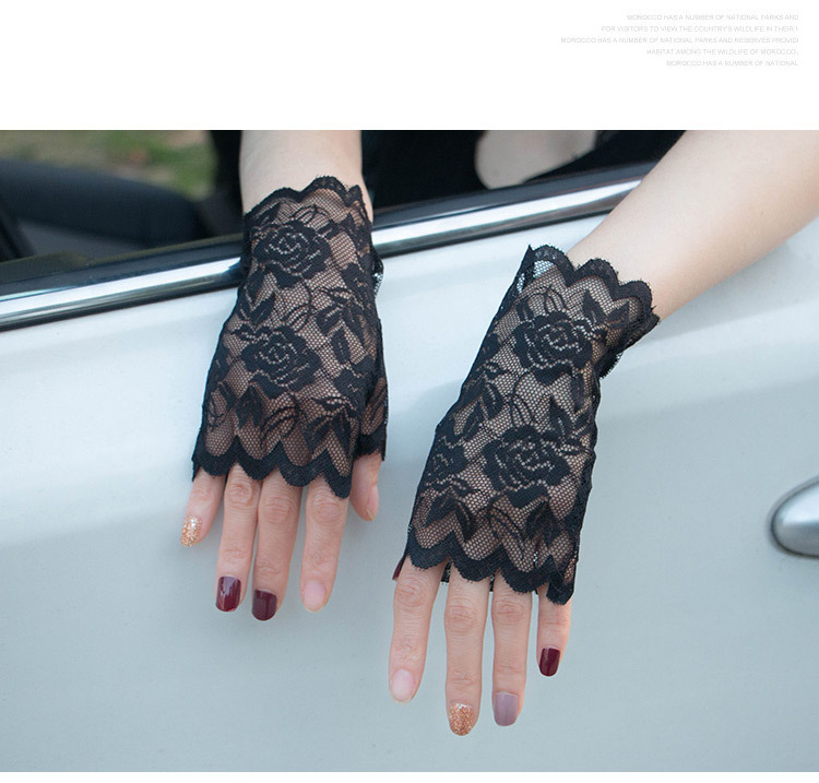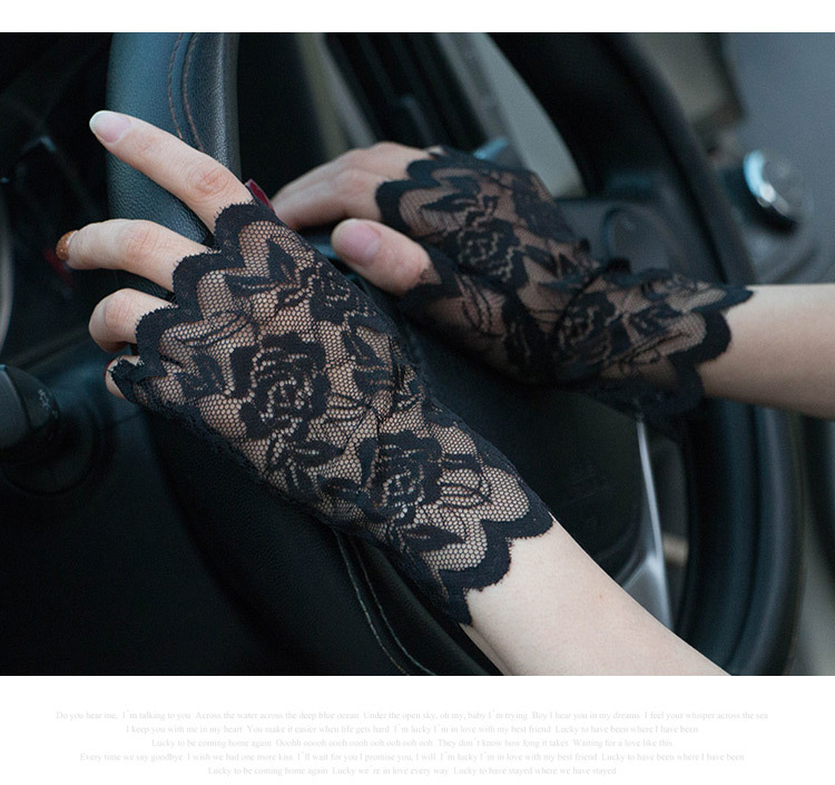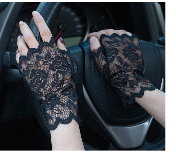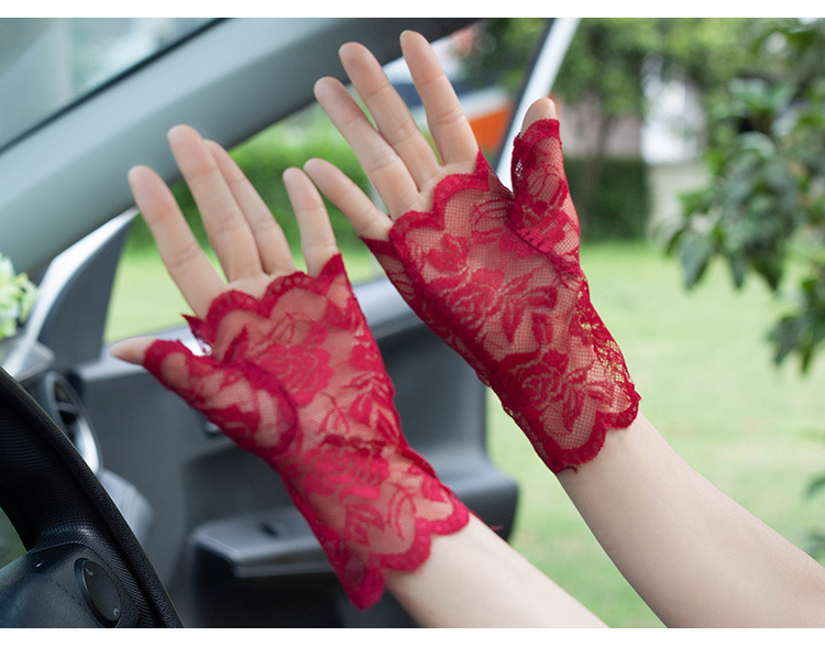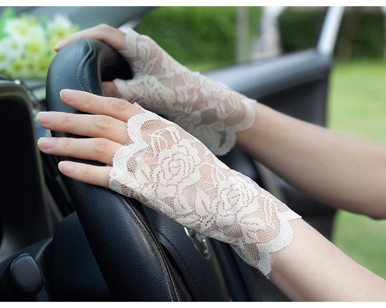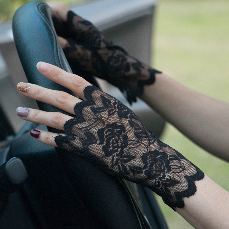 韓国版夏の日焼け止め手袋女性黒刺繍レース運転滑り止め紫外線防止フランスショートタイプ