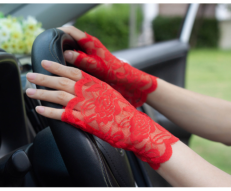 レース日焼け止め半指手袋夏の短い女性の弾力性の薄いタイプの車の傷のカバーのタトゥーの服の組み合わせ