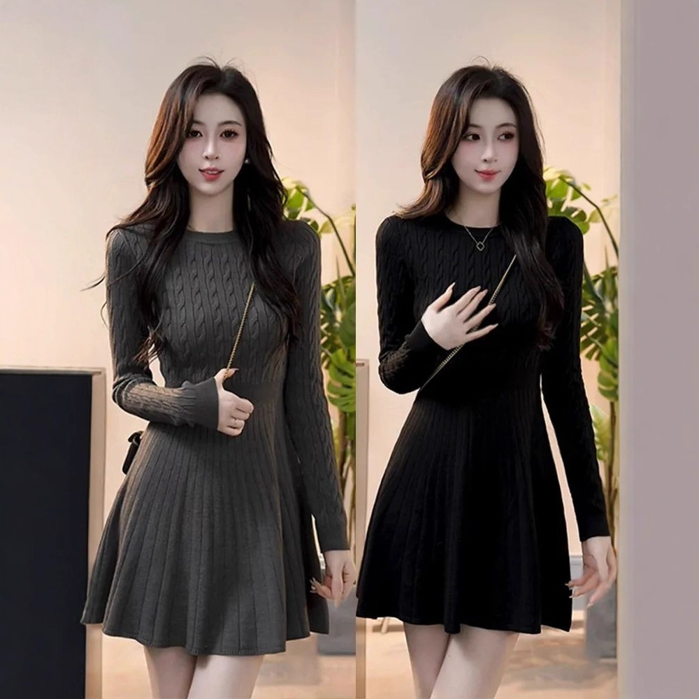 柔らかいモチモチのセクシーなニットのワンピースの女性の春秋のフランス式の復古のvネックの辛いです。