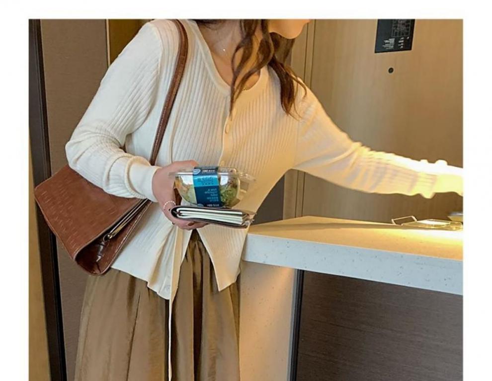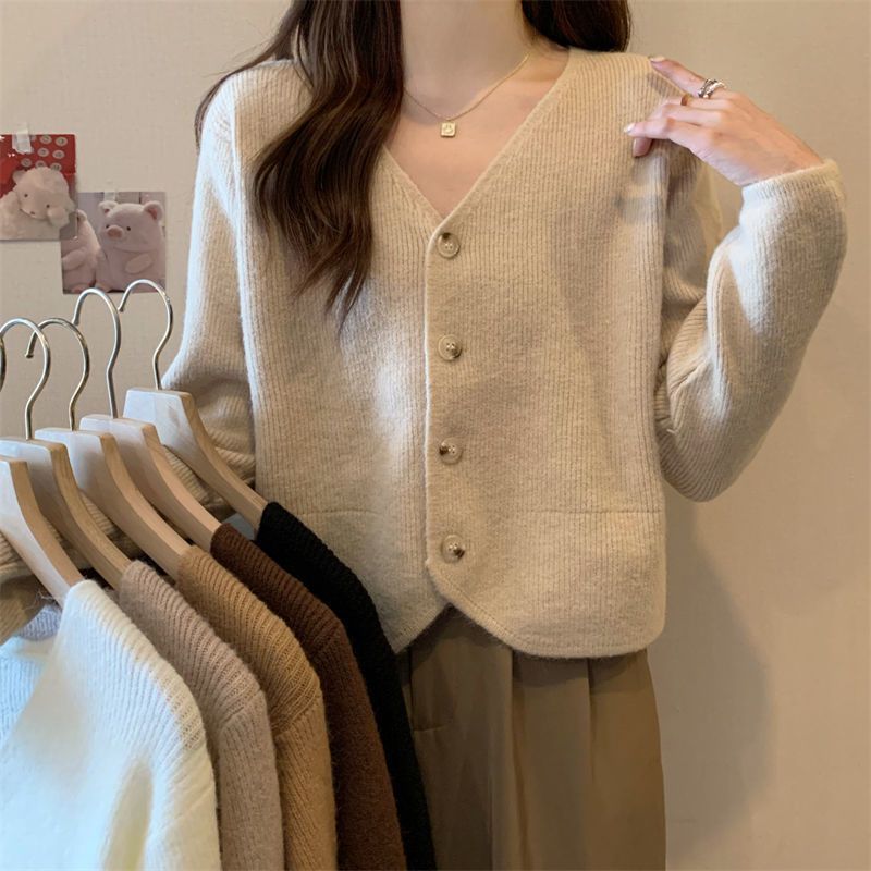 小衆の独特な上着の女性の早秋2023新型vネックのニットの冬の短い洋風のセーターのカーディガンのコート