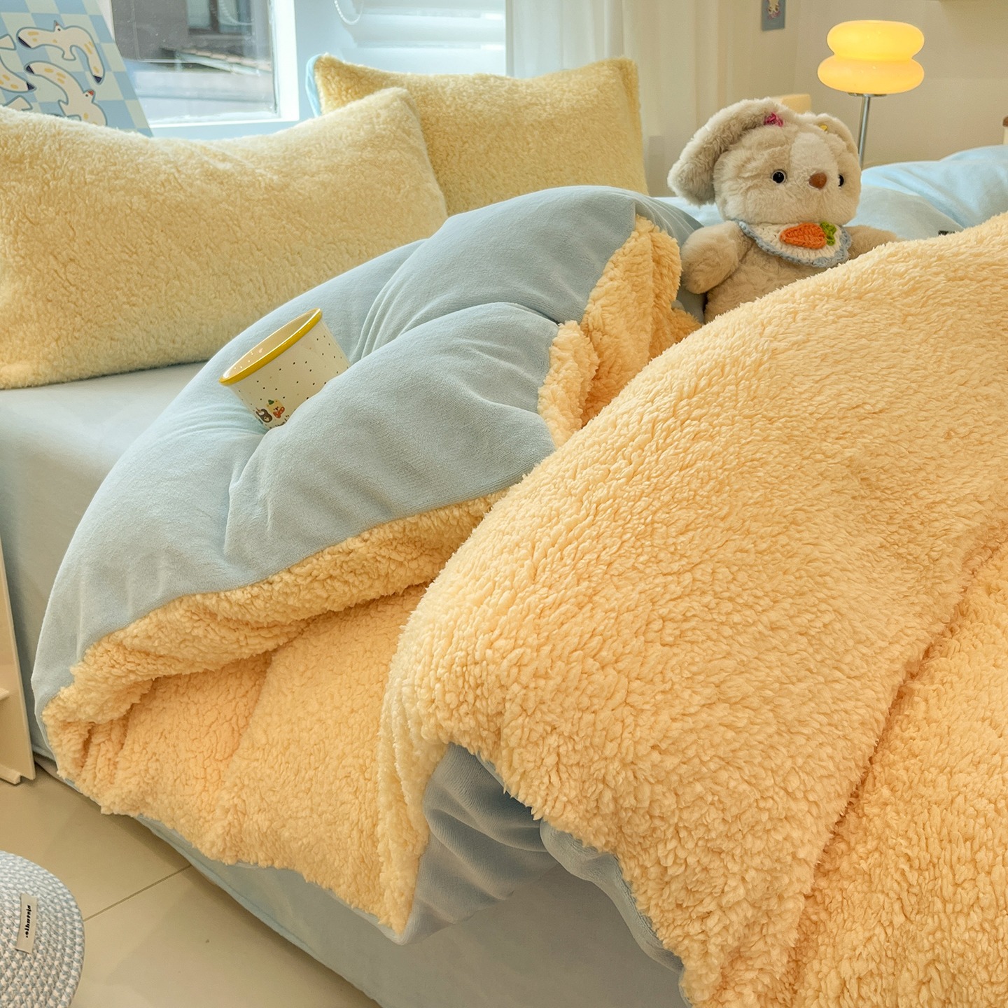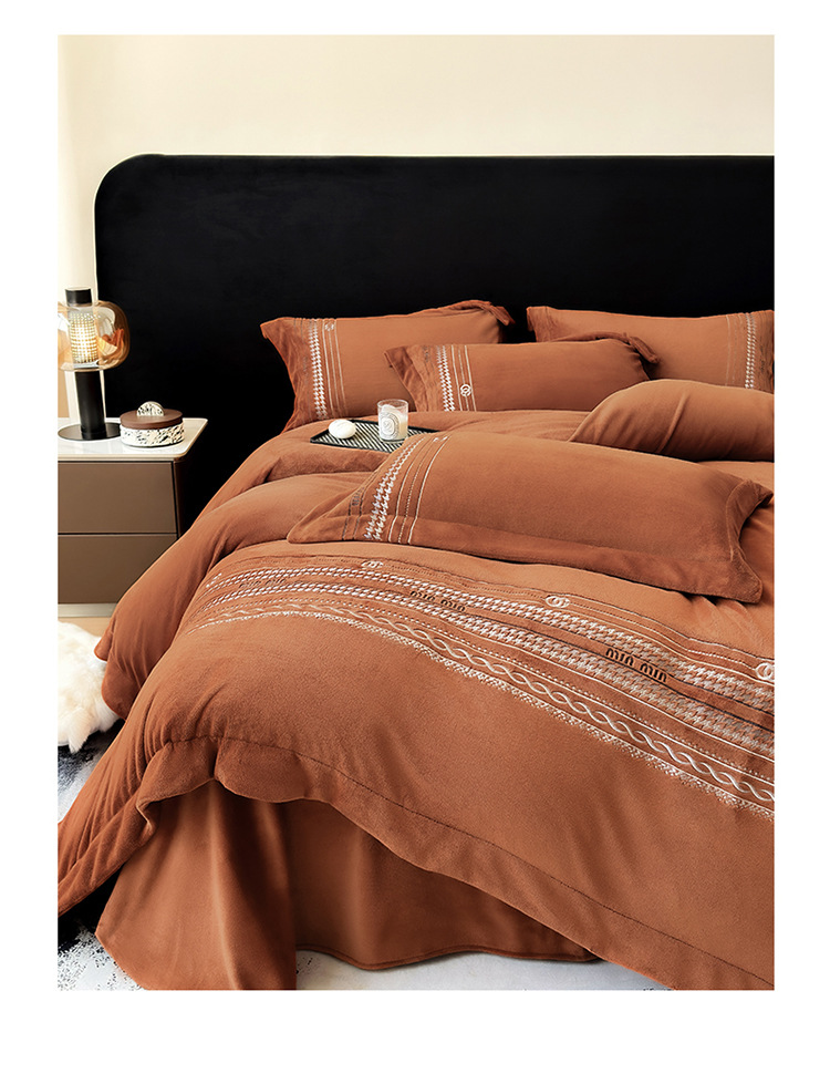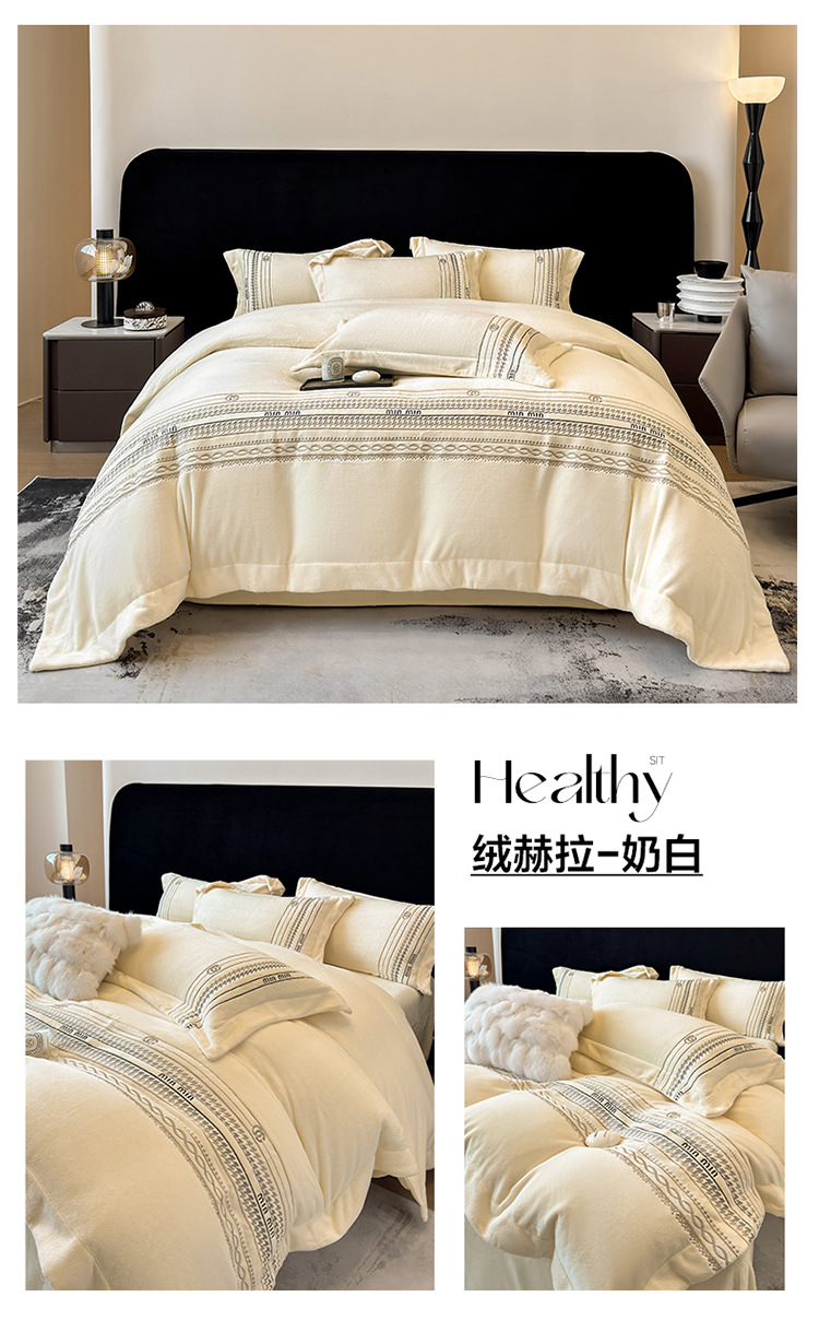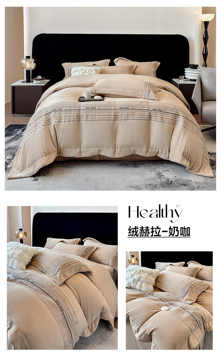 A級ミルクベルベット寝具4点セット 冬用ベルベットシーツ 掛け布団カバー 寝具セット 軽贅沢スタイル ウサギ毛ベルベット4点セット 卸売