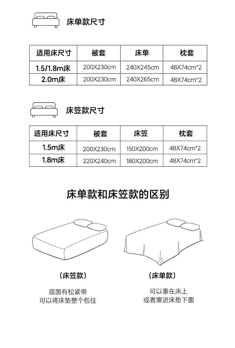 寸法仕様 2メートルベッドシーツ (布団カバー220*240) 4セット,1.5ベッド笠金 (布団カバー200*230) 4点セット,1.8ベッド笠金 (布団カバー200*230) 4点セット,1.8ベッド笠金 (布団カバー220*240) 4点セット