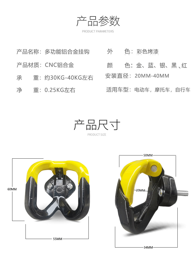 電気自動車のフックの前に通用します。穴を開けないでください。自転車専用の部品です。オートバイのフックの神器です。