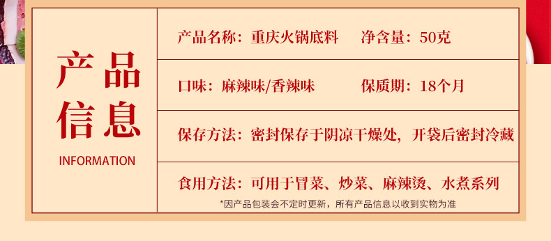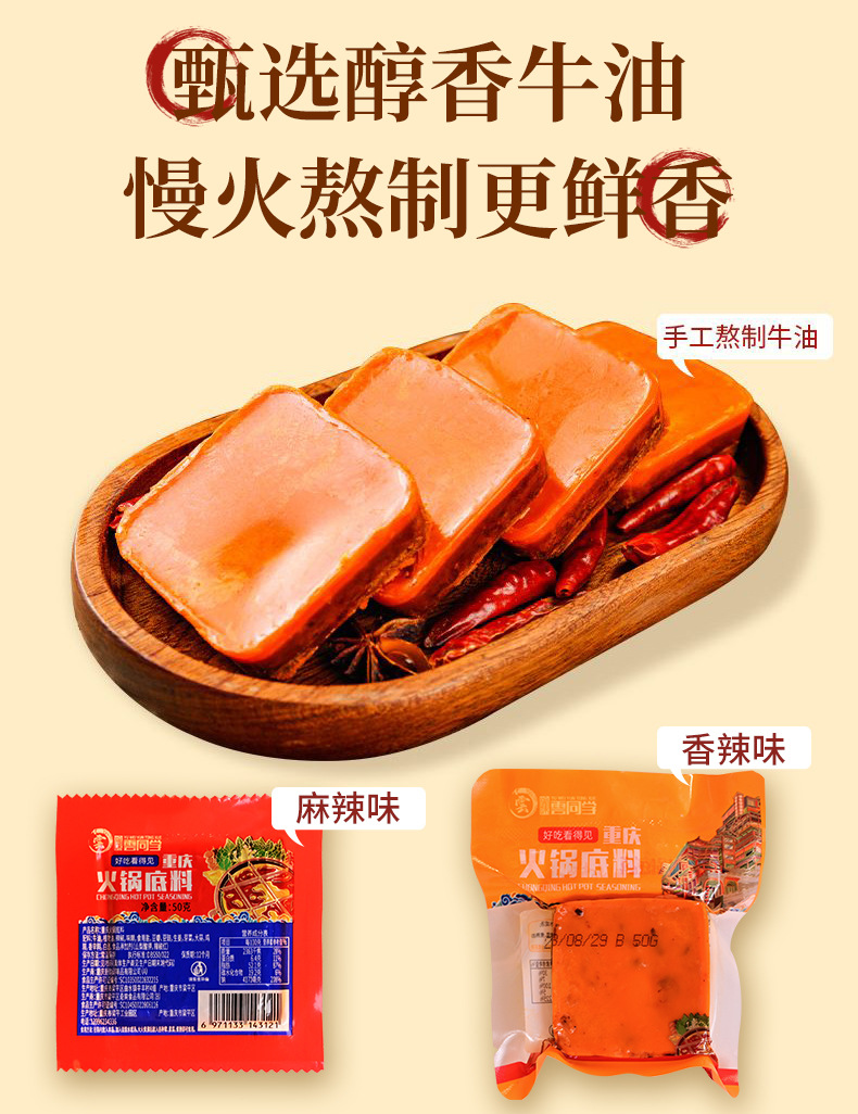 重慶火鍋底料卸売り小片50g小部麻辣热鉢鶏調味料牛油手作り商用料理