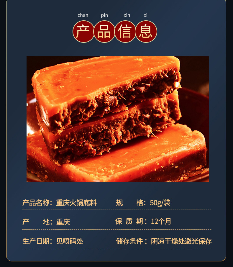 解放碑本場重慶牛油香辛老火鍋底材小包装50g/箱重慶火鍋底材卸売り
