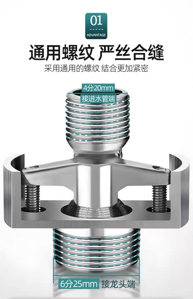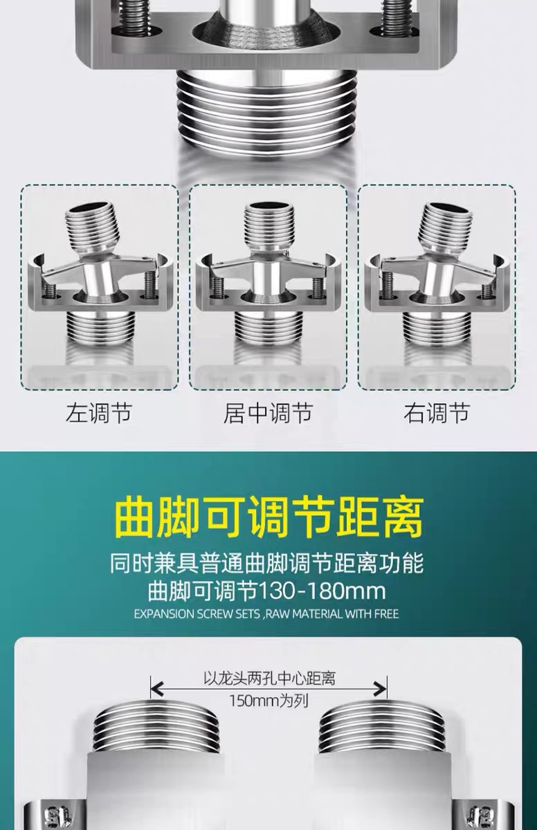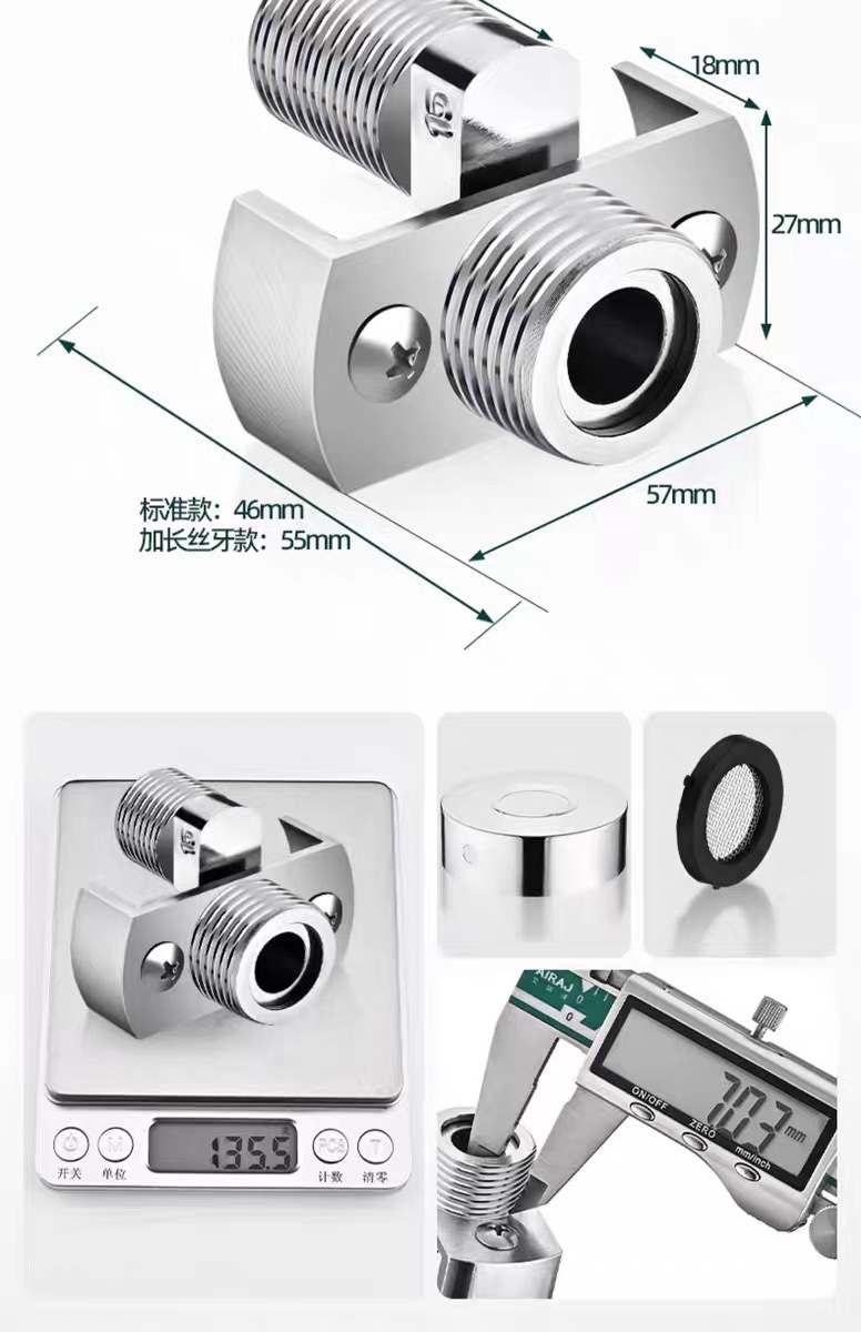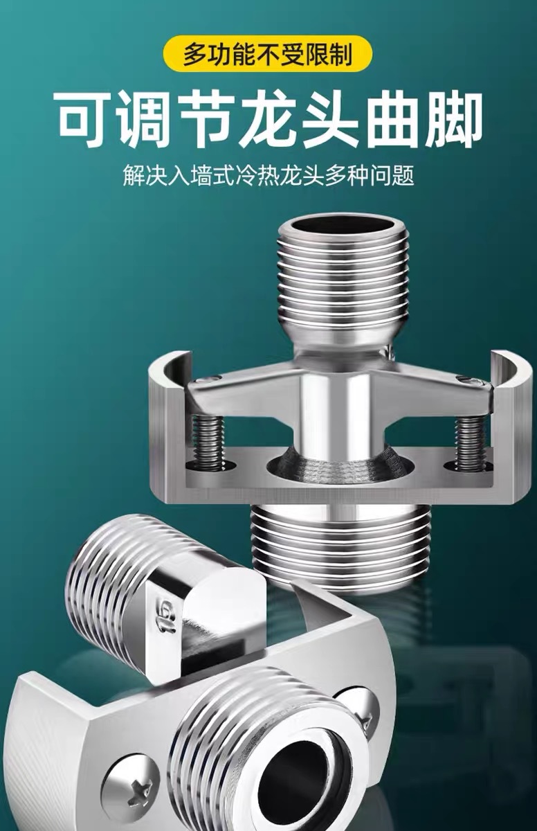 304不锈钢万向曲脚混水阀淋浴花洒歪斜调节弯角加长变径偏心拐角