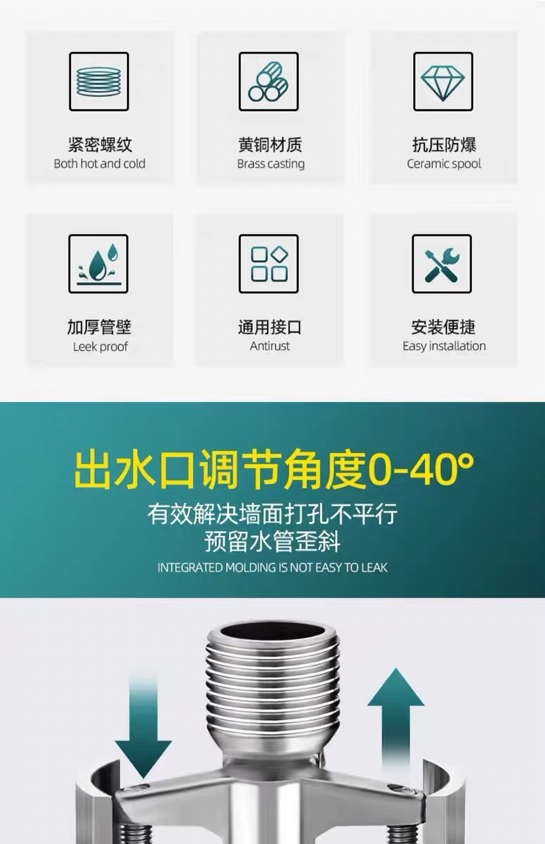 万向全铜淋浴龙头曲角偏心角度可调变径弯脚角度调节混水阀弯角