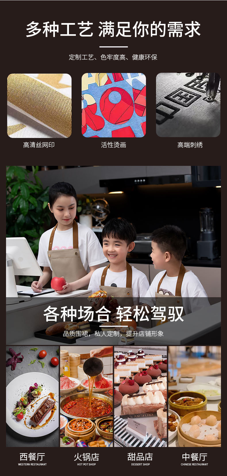 火鍋店客専用エプロンレストラン長型ウエスト焼き肉店tan鴨血客用作業服印字ロゴ
