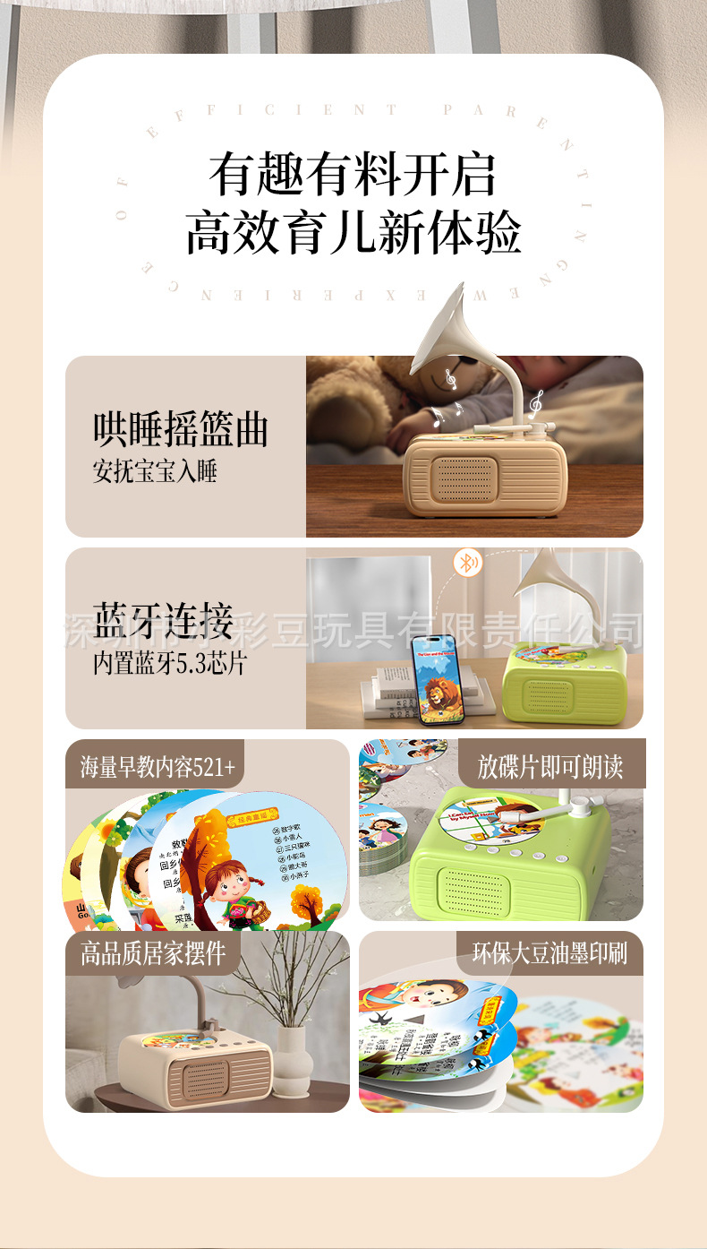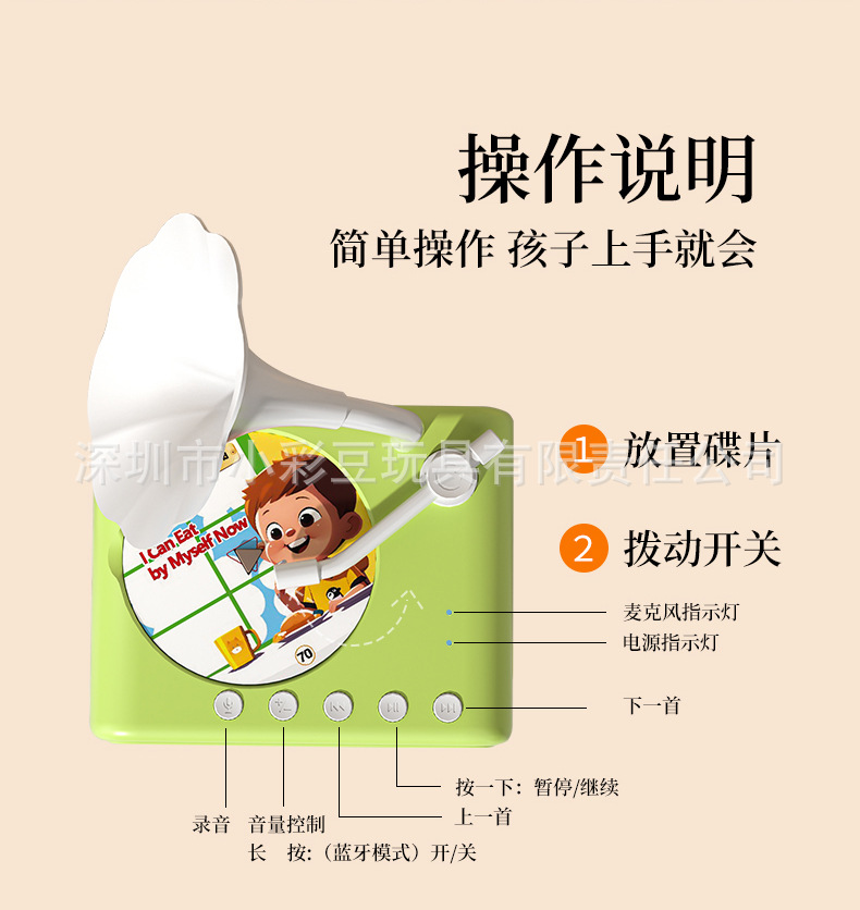 跨境迷你儿童留声机唱片故事音乐播放器男孩女孩的感官玩具留声机