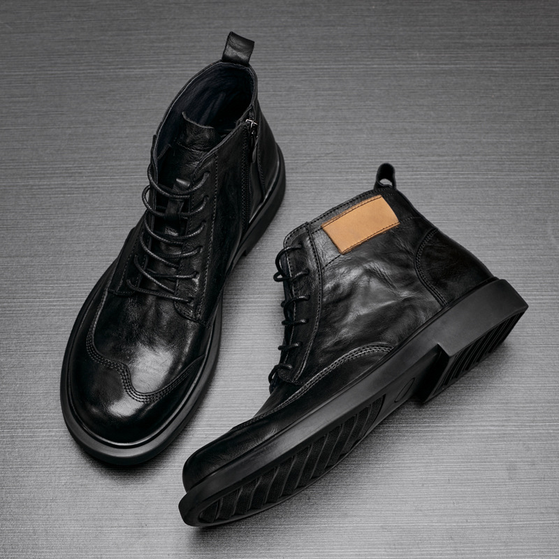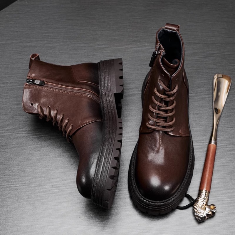 阿美カチカチ男性レトロ本革プリクラ靴英倫工装靴厚底靴高助カジュアルマーティンブーツ