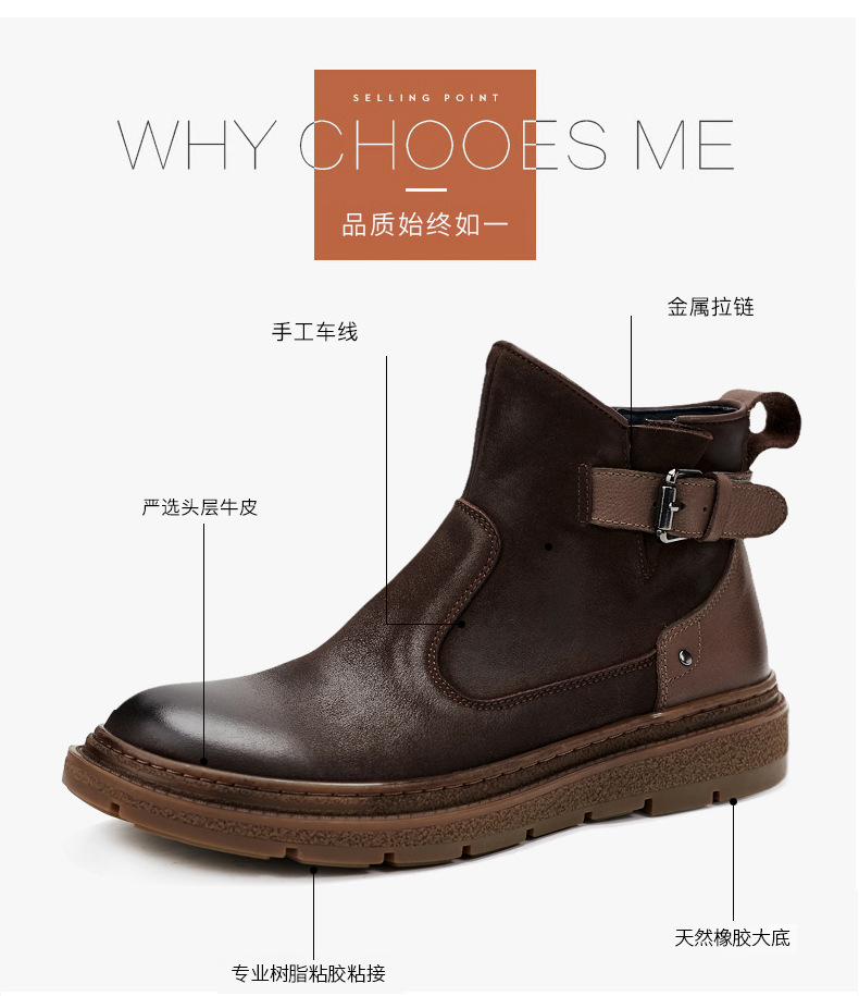 ファッション的な手は皮の短いブーツとベルベットの本革男性のカジュアルな靴マーティンブーツ男性靴チェルシーブーツE33