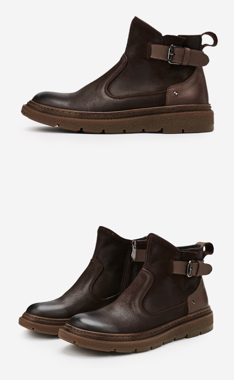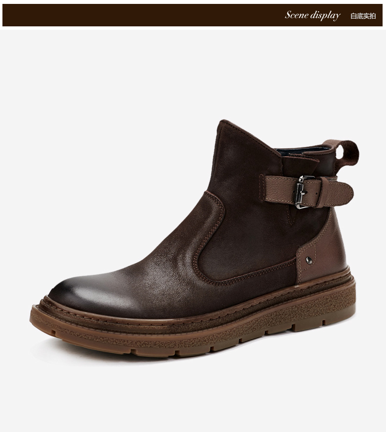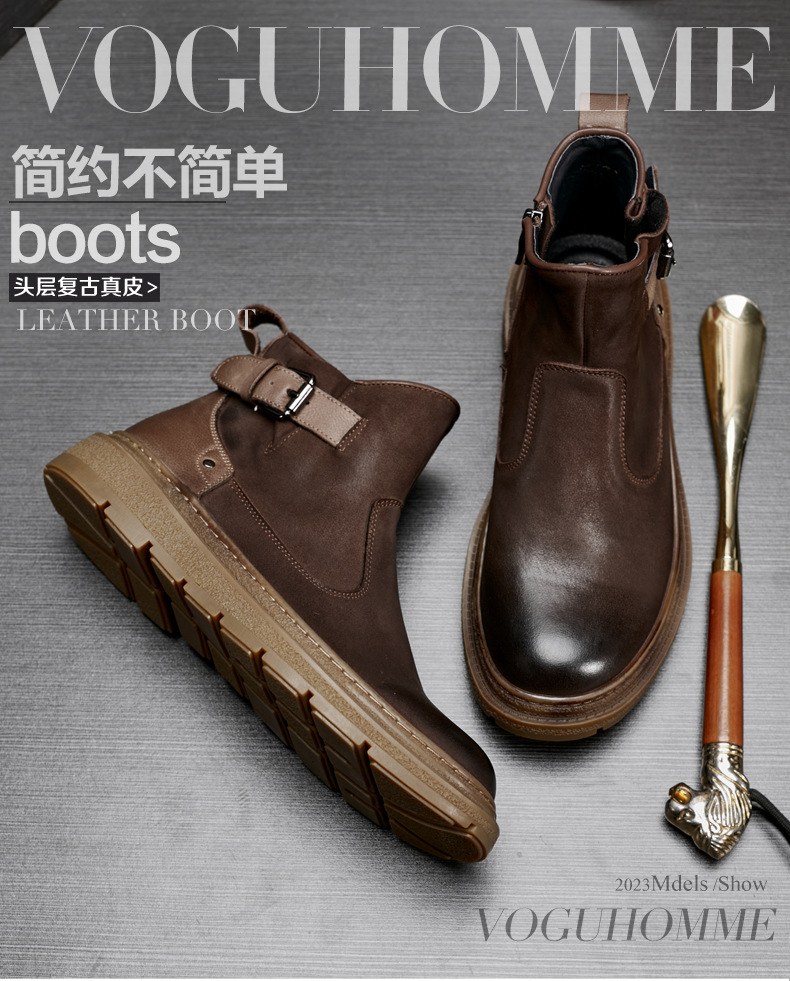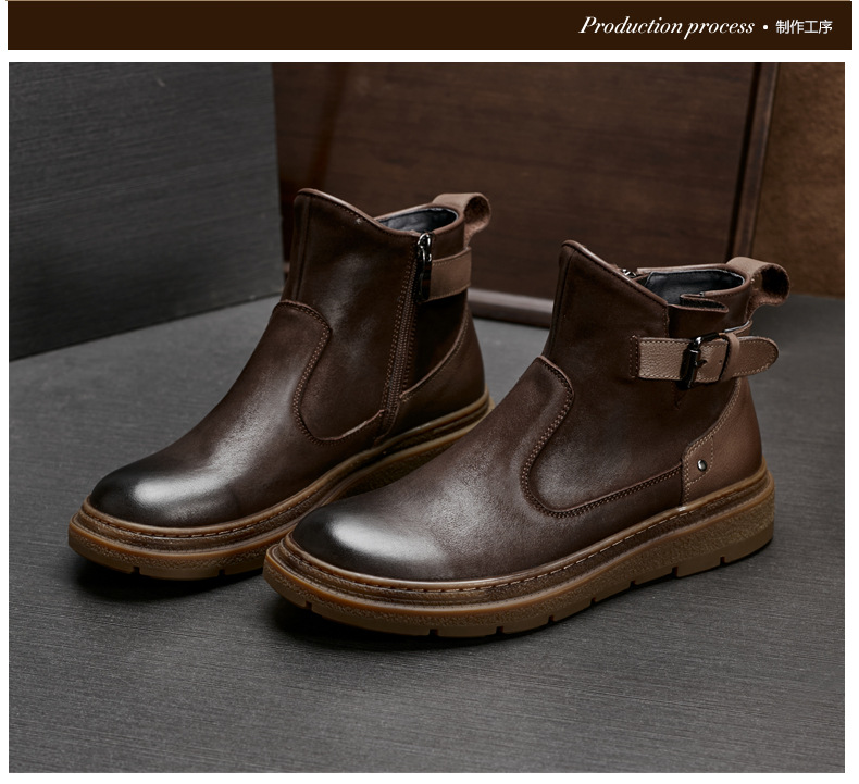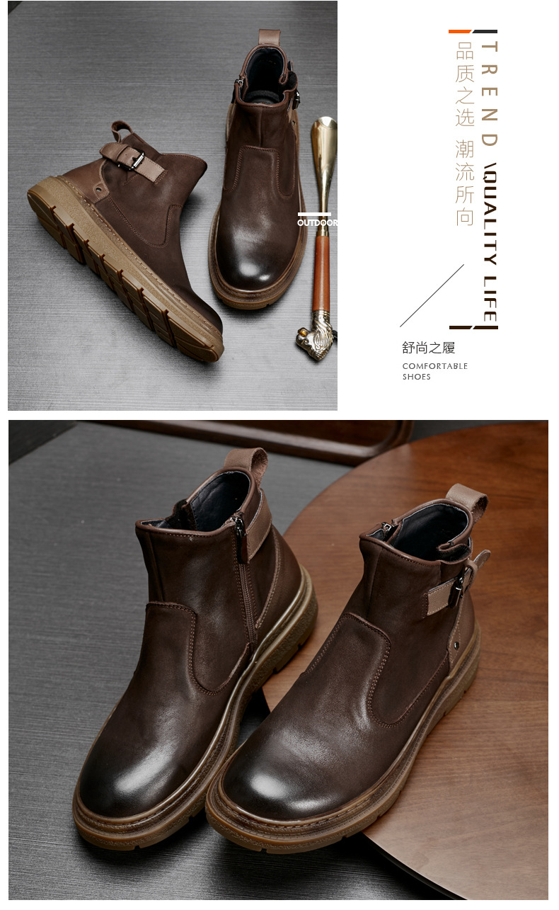 水洗い馬皮秋冬レトロ百合マーティンブーツ本革ショートブーツ厚い底チェルシーブーツ靴男E233