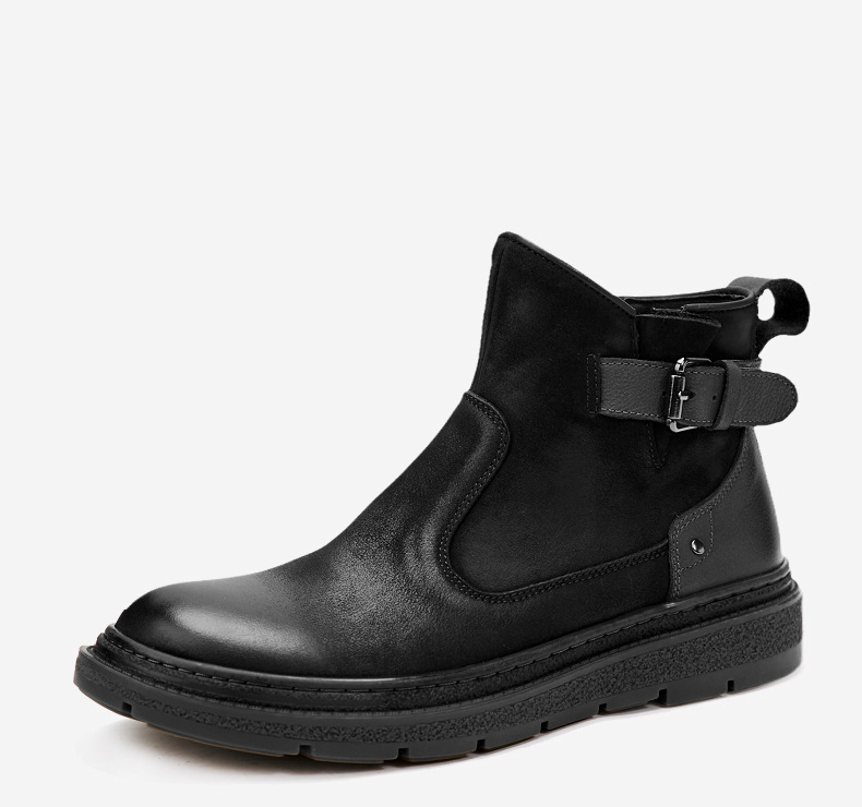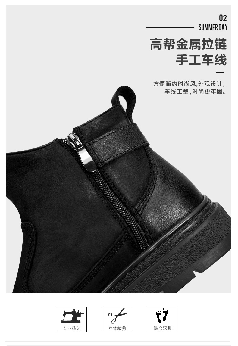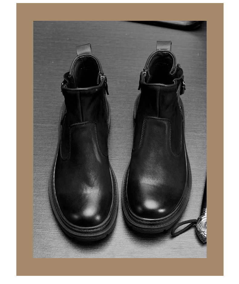 时尚百搭头层牛皮靴子英伦风中帮个性皮靴男士潮流切尔西靴