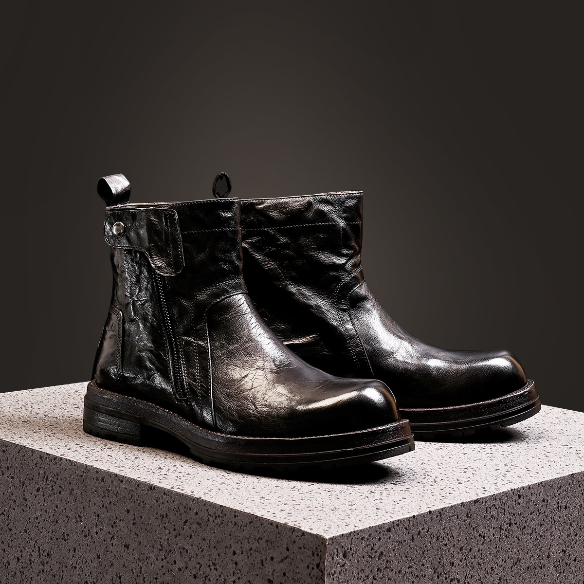 メンズブーツ 2025年秋 本革 ミッドカット レザーブーツ レトロ カジュアル ショートブーツ おしゃれ 多用途 ラウンドトゥ マーティンブーツ トレンド