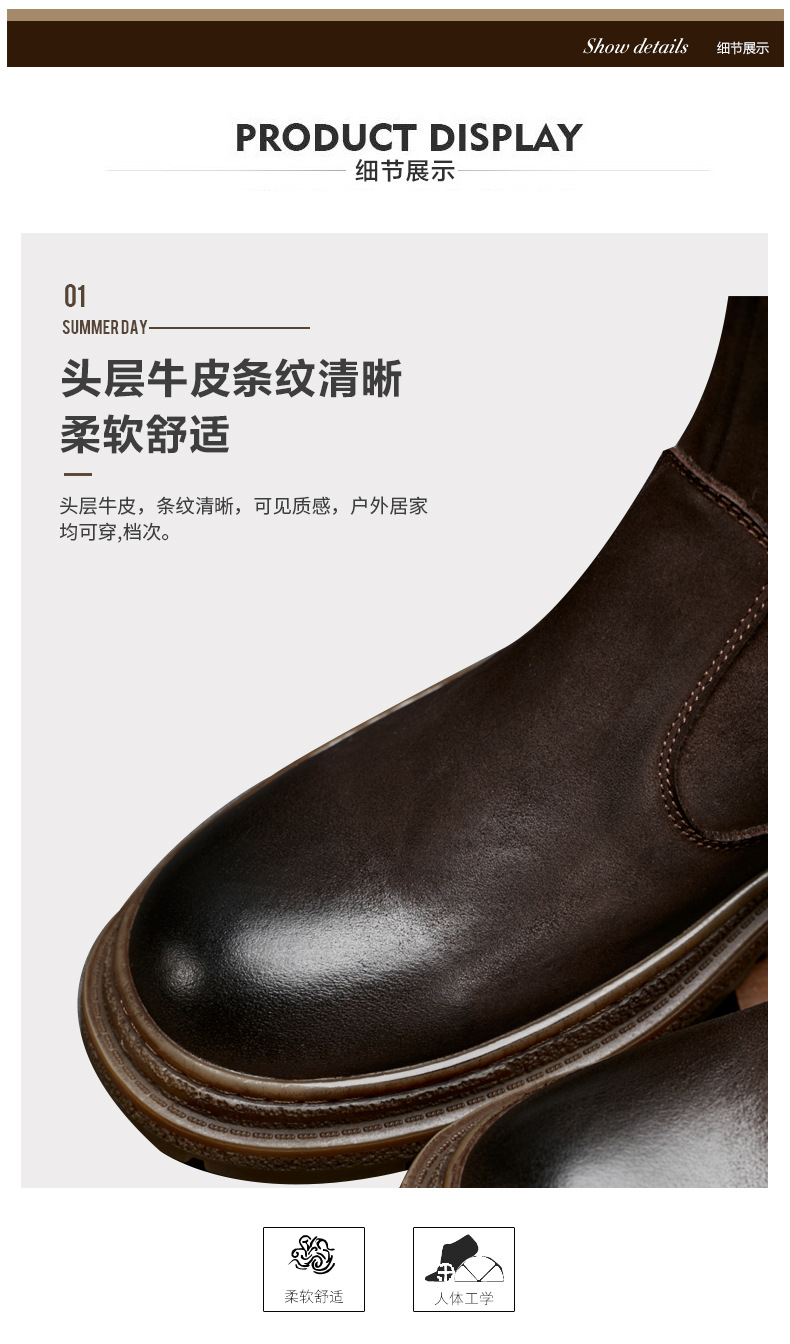 铂巍商务休闲切尔西靴英伦百搭复古工装短靴一脚蹬真皮潮流男靴