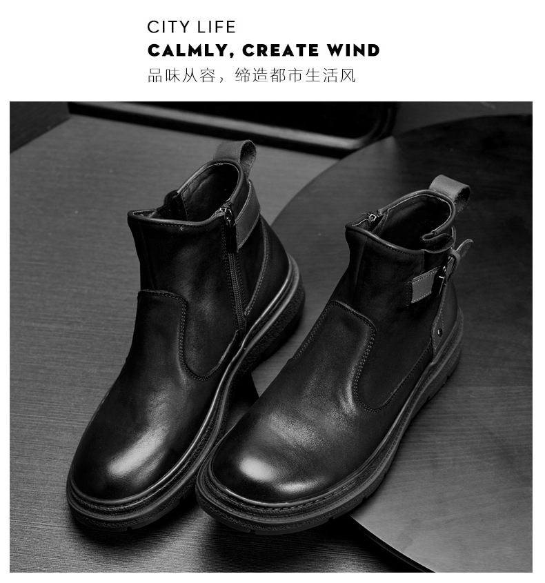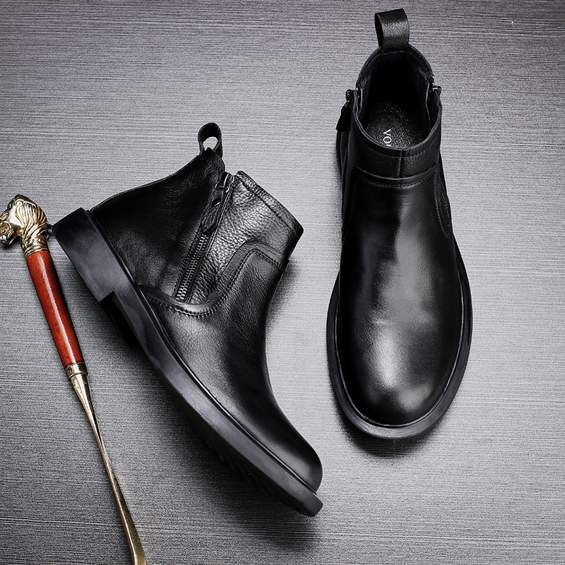 ブーツ男性本革ファッションマーティンブーツは、厚い底の皮面チェルシーブーツのファッションファスナーのブーツ男性カジュアル