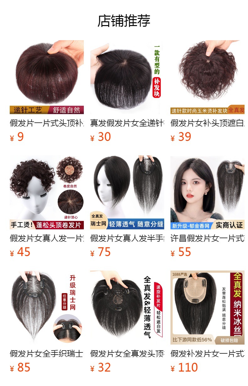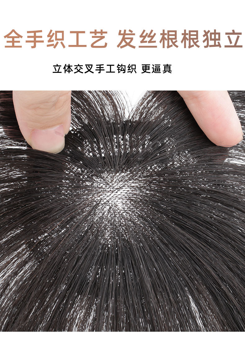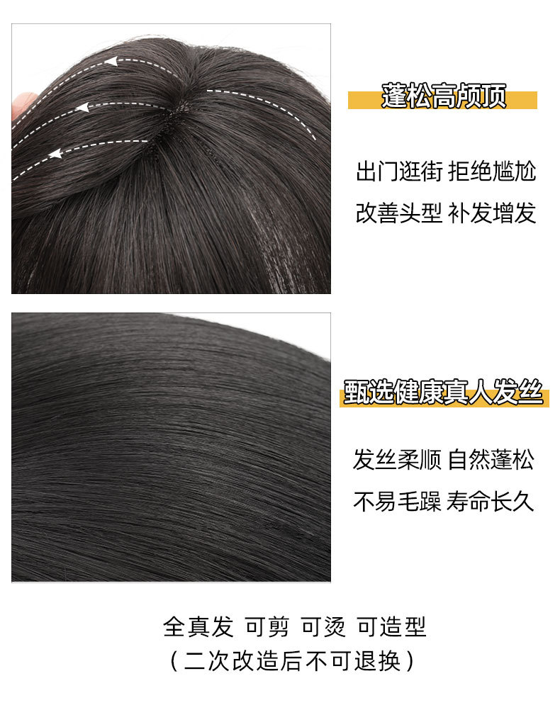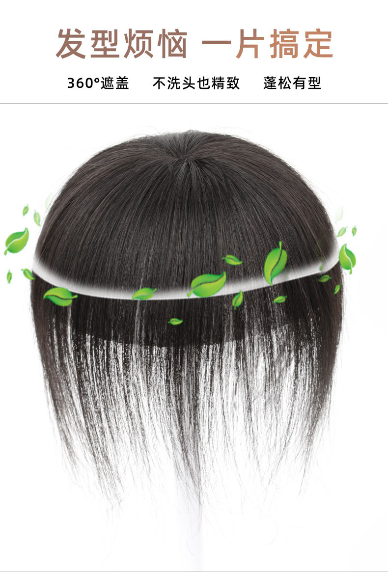 女士假发片全真人发遮头顶发缝专用逼真自然蓬松高颅顶补发片批发