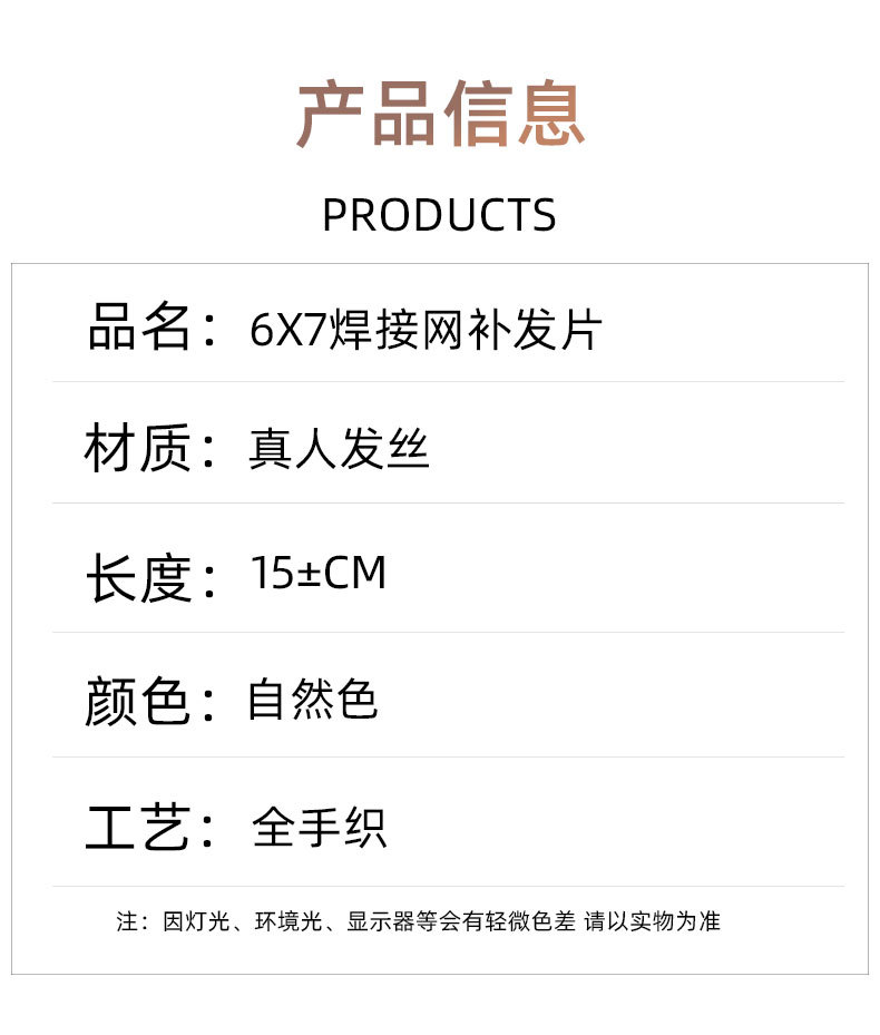 溶接ネットの頭の上で髪を補充します。全部手織りします。