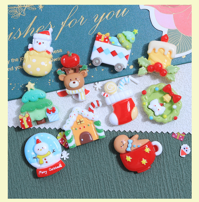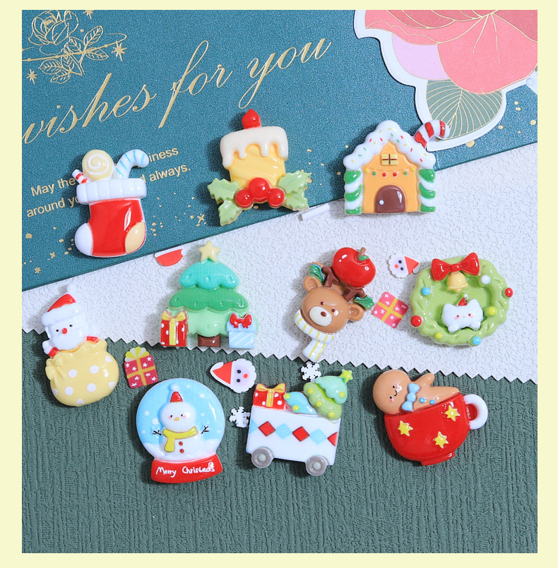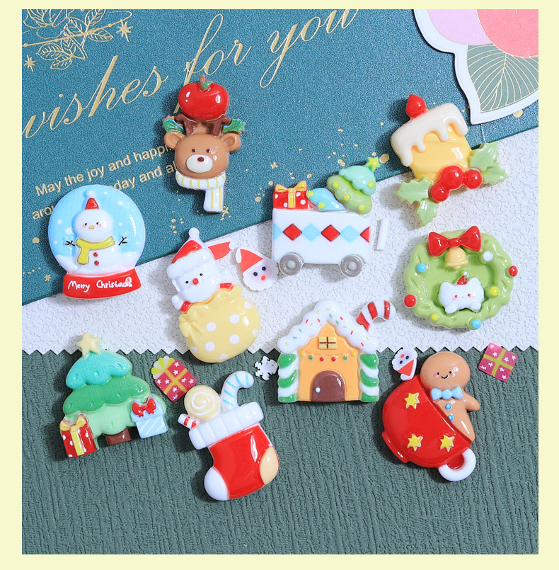 欢乐圣诞节卡通手工diy饰品配件奶油胶树脂小配件洞洞鞋扣材料包