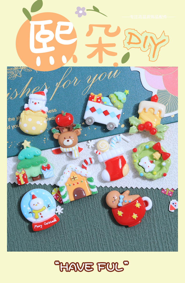 卡通可爱圣诞节创意手工diy饰品配件奶油胶树脂小配件发夹材料包