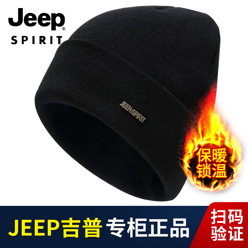 代発jeep spirit帽子男性秋冬ベルベット厚手ウール入り毛糸帽子a0360