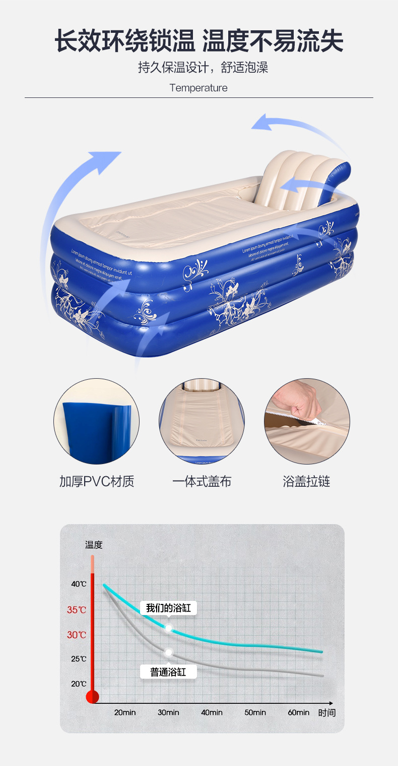 家用pvc加厚成人双人泡澡桶便携折叠加长冷热双用沐浴恒温洗澡桶