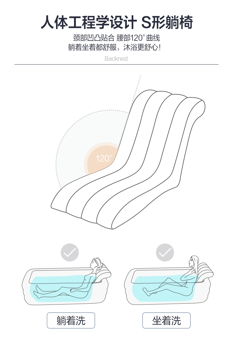 大人用浴室インフレータブル浴槽、PVCジッパー式マッサージ風呂、大人用折りたたみ式S字型背もたれ付き浴槽、家庭用