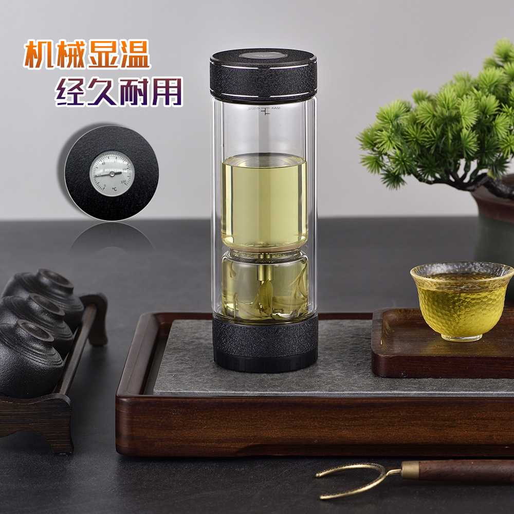 温度表示付き茶水分離泡立て器付き茶器、男性用フィルターガラスカップ、ビジネスウォーターカップ、二重構造ギフト、クリエイティブな温度表示
