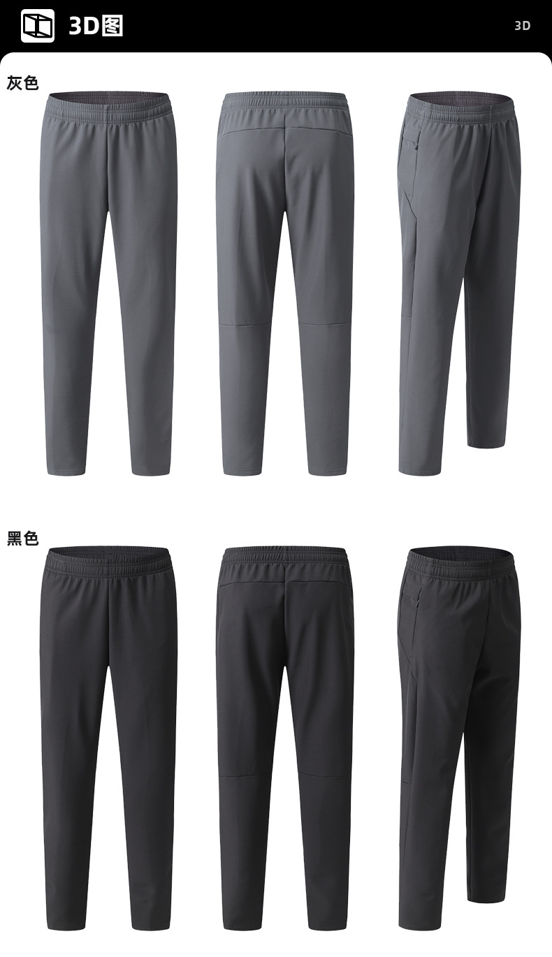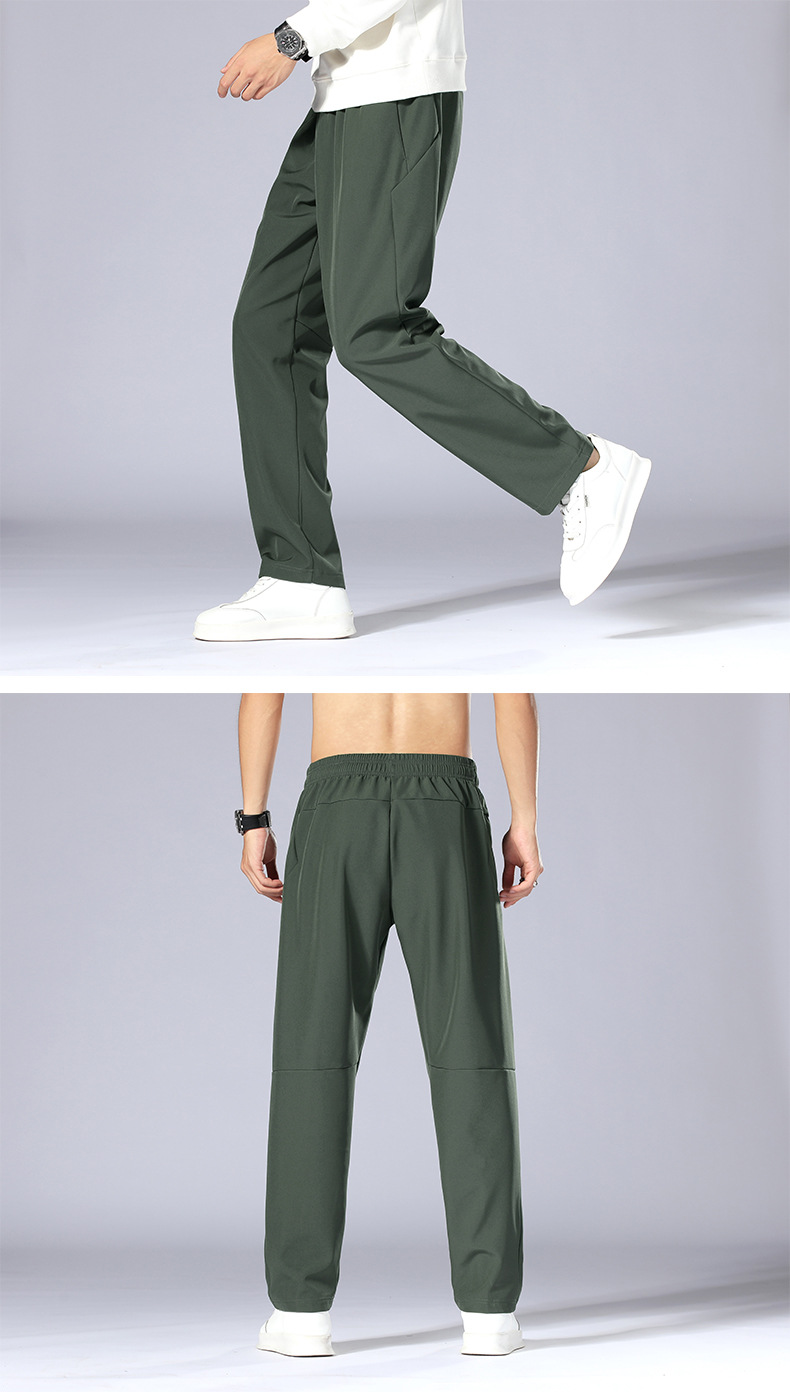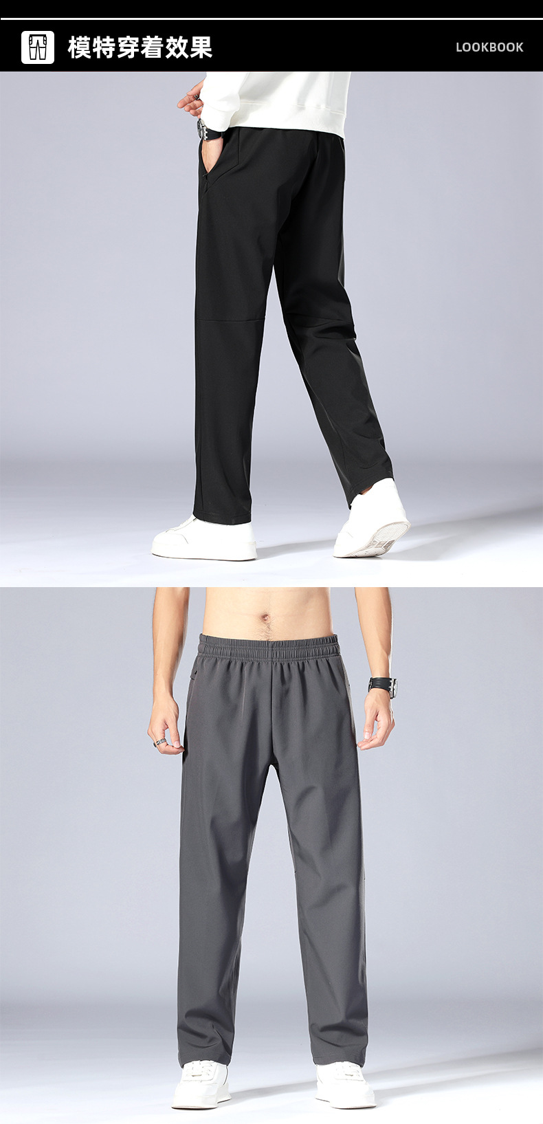 メンズスポーツパンツ 春夏用 アイスシルク 速乾 ジッパー付き フィットネス織り紐付きストレートカジュアルパンツ ランニングパンツ 冷感