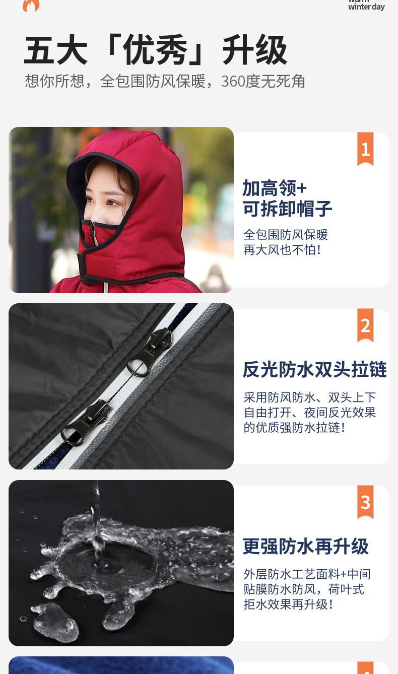 【ベルベットファスナー金】電気自動車防風服冬保温電気自動車自転車自転車防風防水防風服