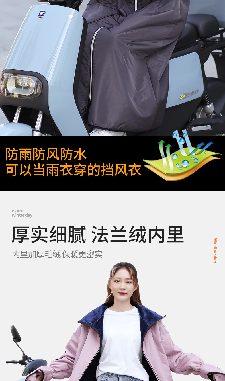【ベルベットの前後2着】電気自動車のウインドブレーカー冬の電気自動車が自転車に乗って防風された防水防風服