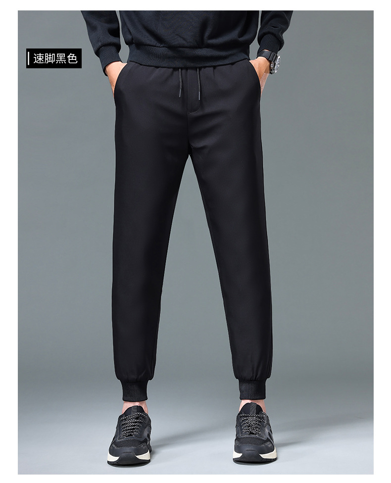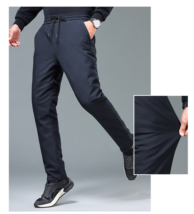 秋冬用ミルクシルク厚手カジュアルメンズパンツ、三防加工、裏起毛、メンズストレート、高伸縮性、防シワ、ドレープ感のあるビジネススーツパンツ