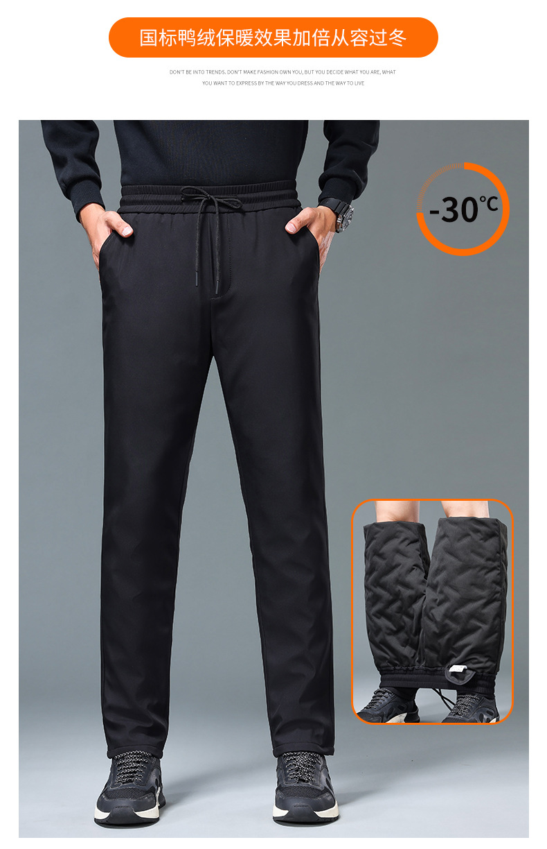 新商品の90白ガチョウの羽毛のズボンの冬の男性のカジュアルなビジネスのズボンは厚い保温のガチョウのズボンの外で男性のズボンを着ます。