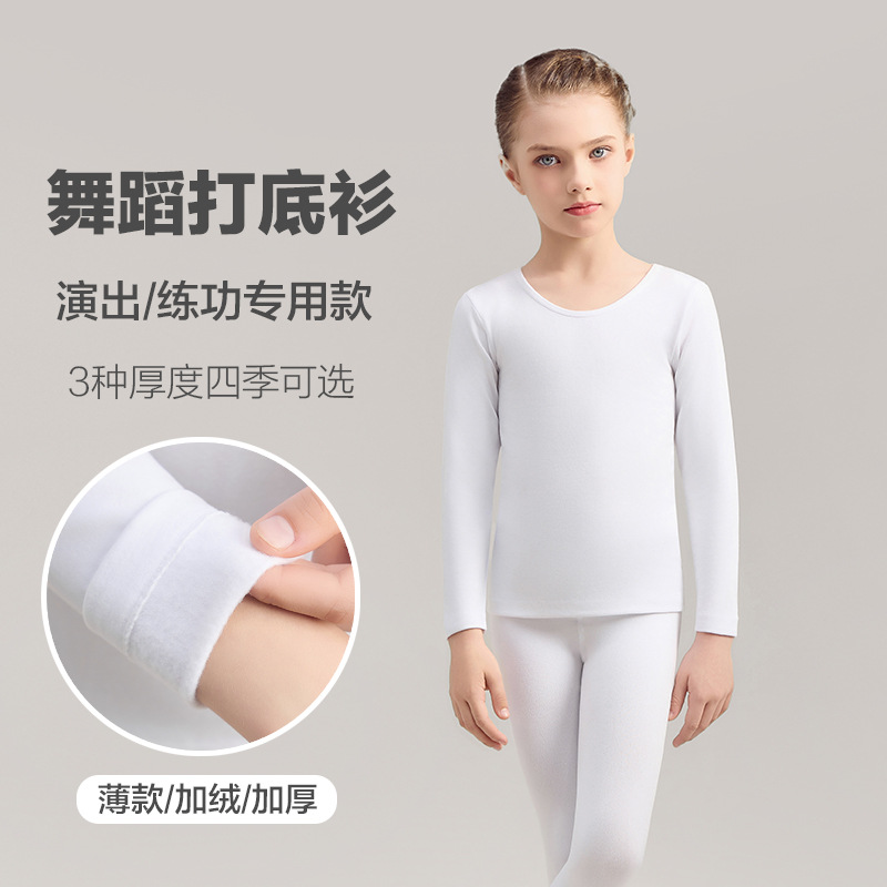 儿童白色打底衫加绒加厚秋冬女童男童舞蹈演出紧身上衣内衣套装