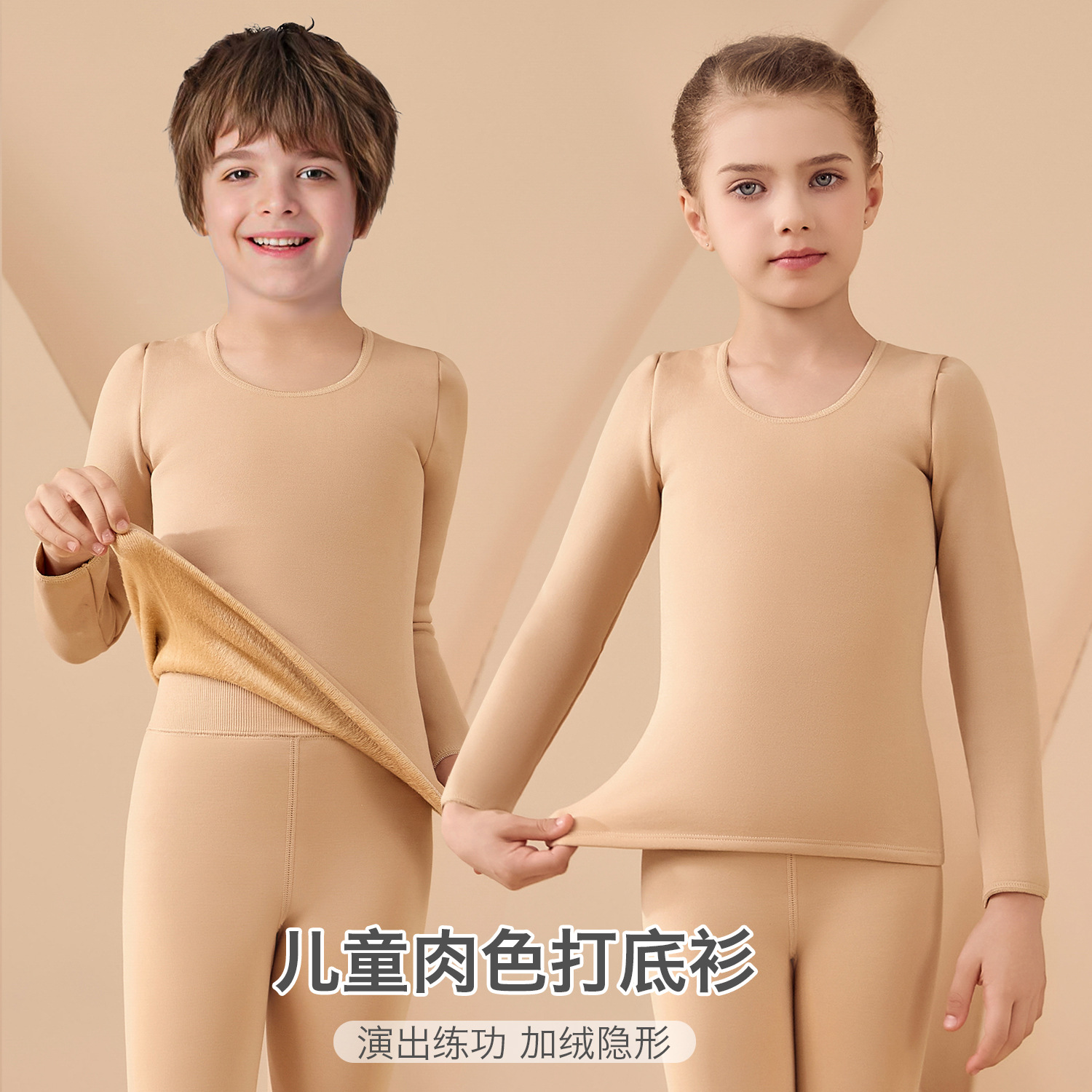 儿童肉色打底衣秋冬加绒加厚女童隐形紧身舞蹈演出练功肤色打底衫