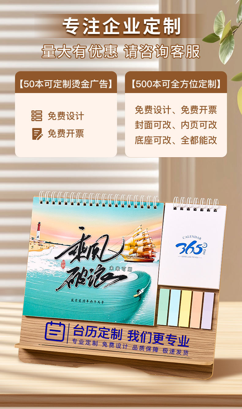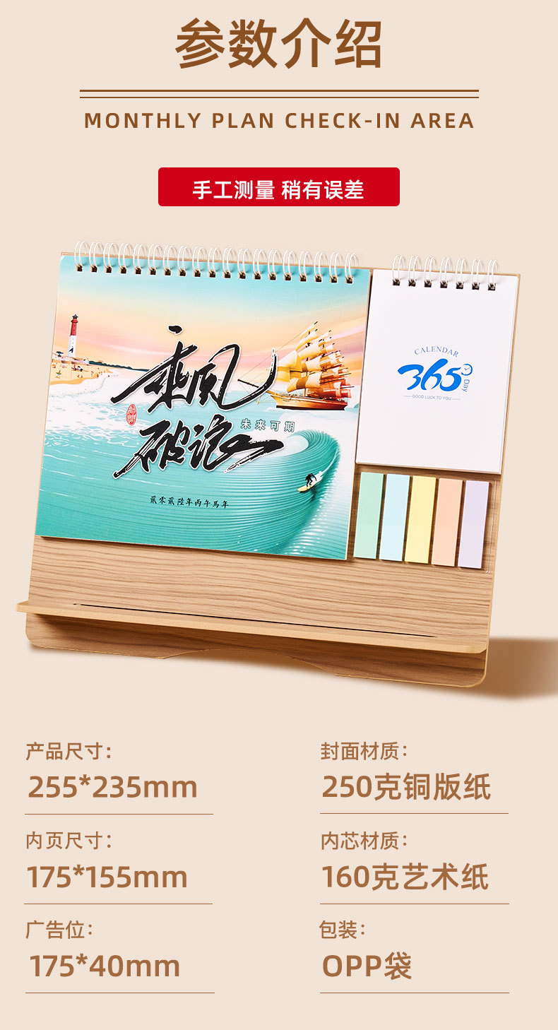 马年台历26年定制来图定做创意便签木质日历订制企业广告logo月历