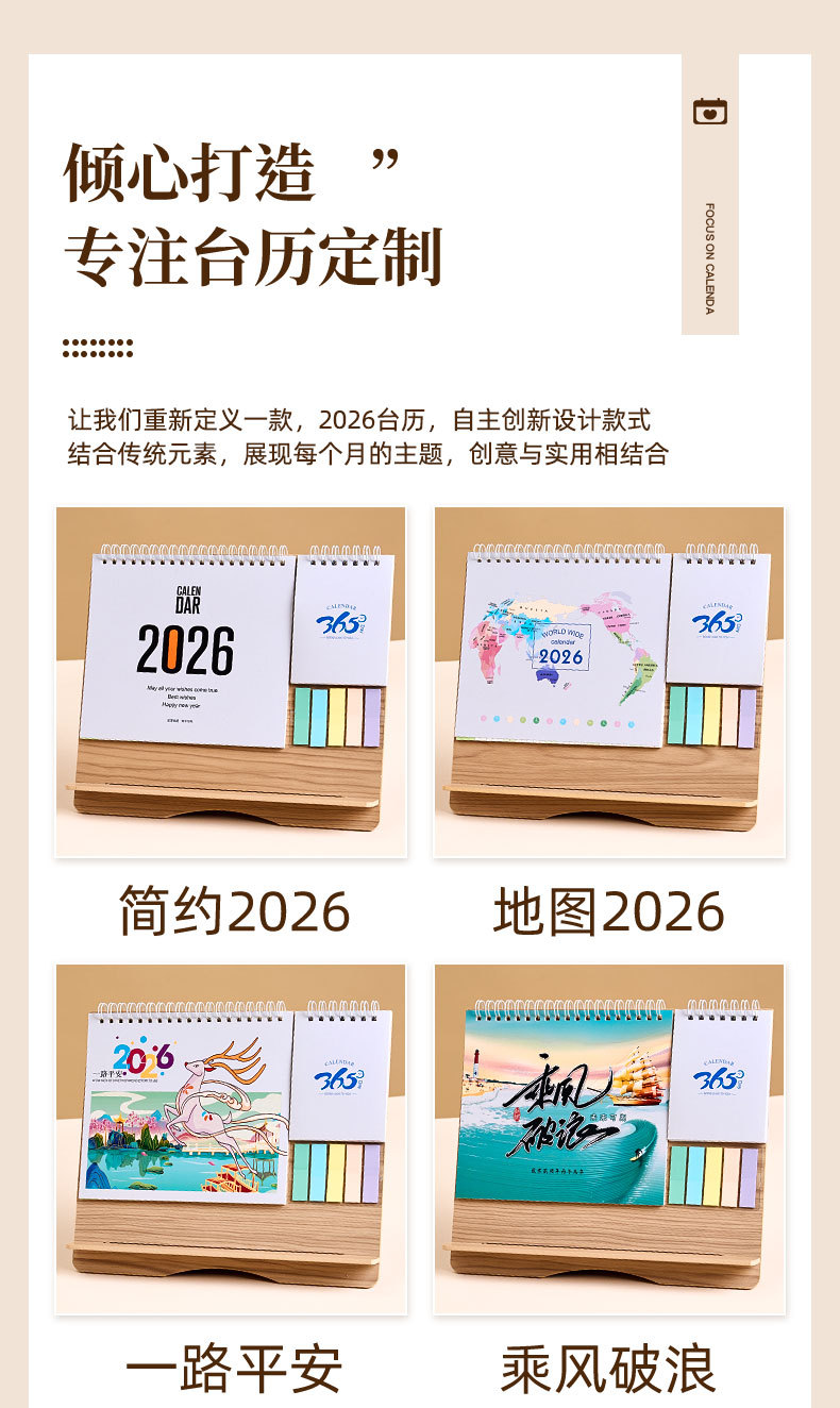 2026创意台历专版制作国风月历供应礼品企业台历定制LOGO桌面摆件
