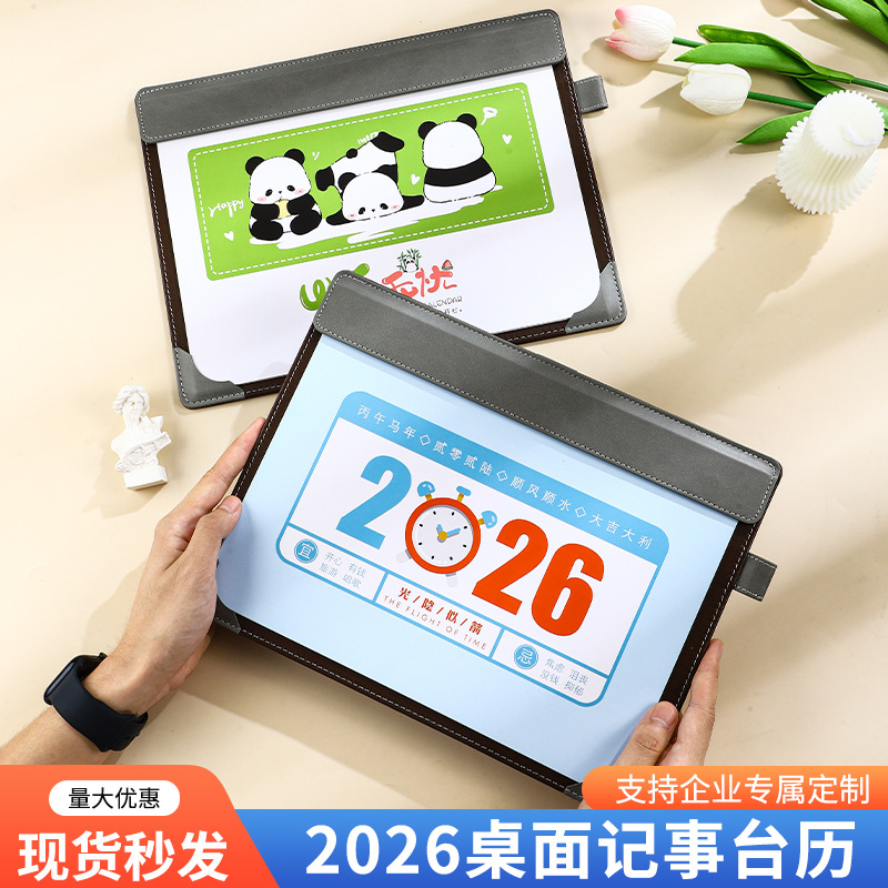 日历鼠标垫2026年台历皮质桌垫定制台垫带笔插商务计划打卡月历