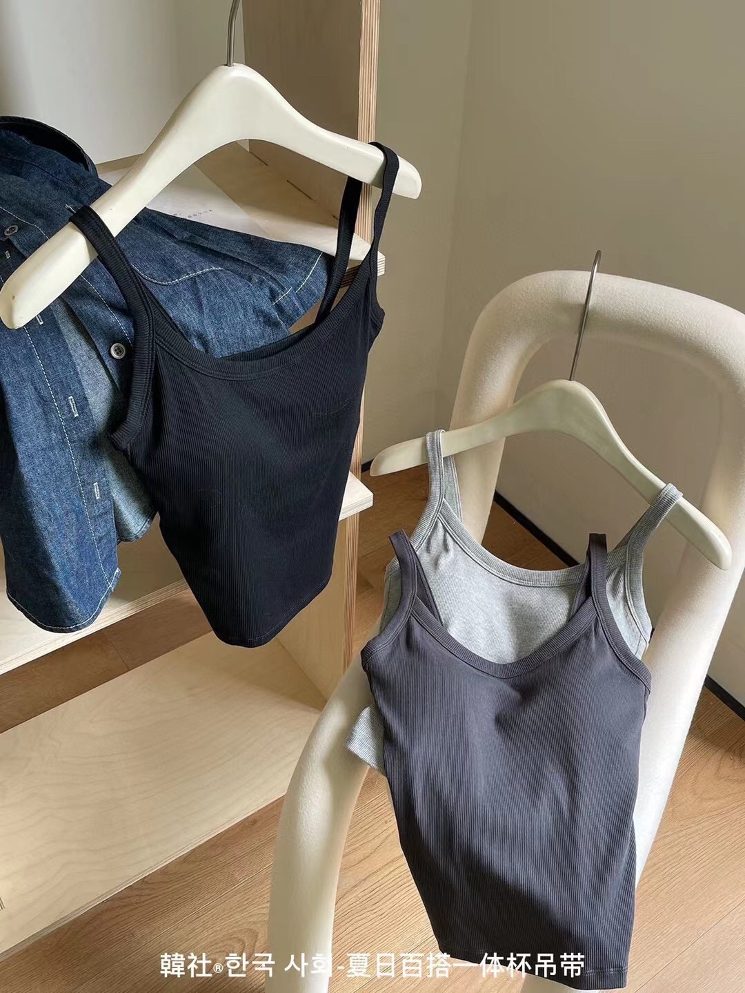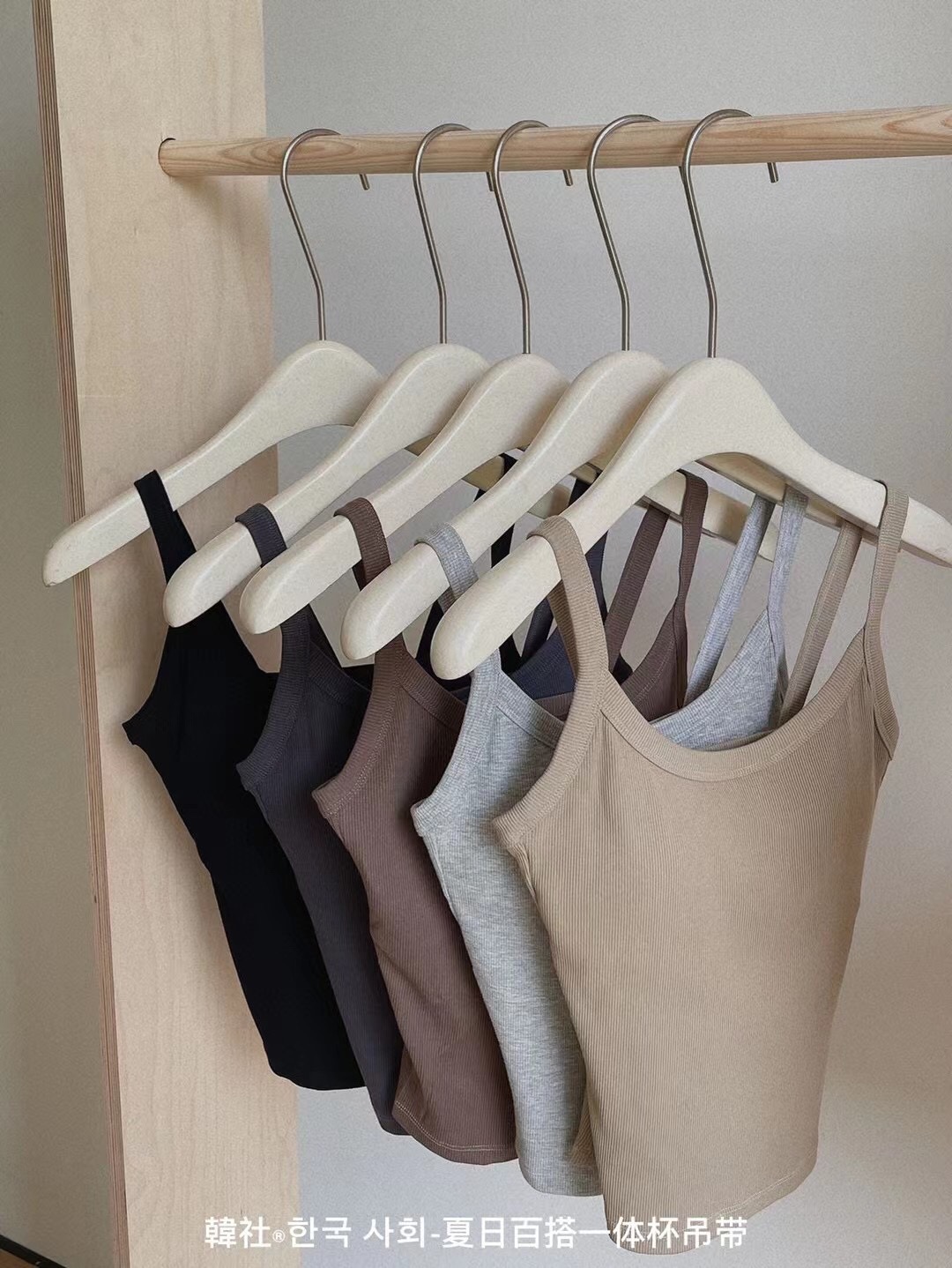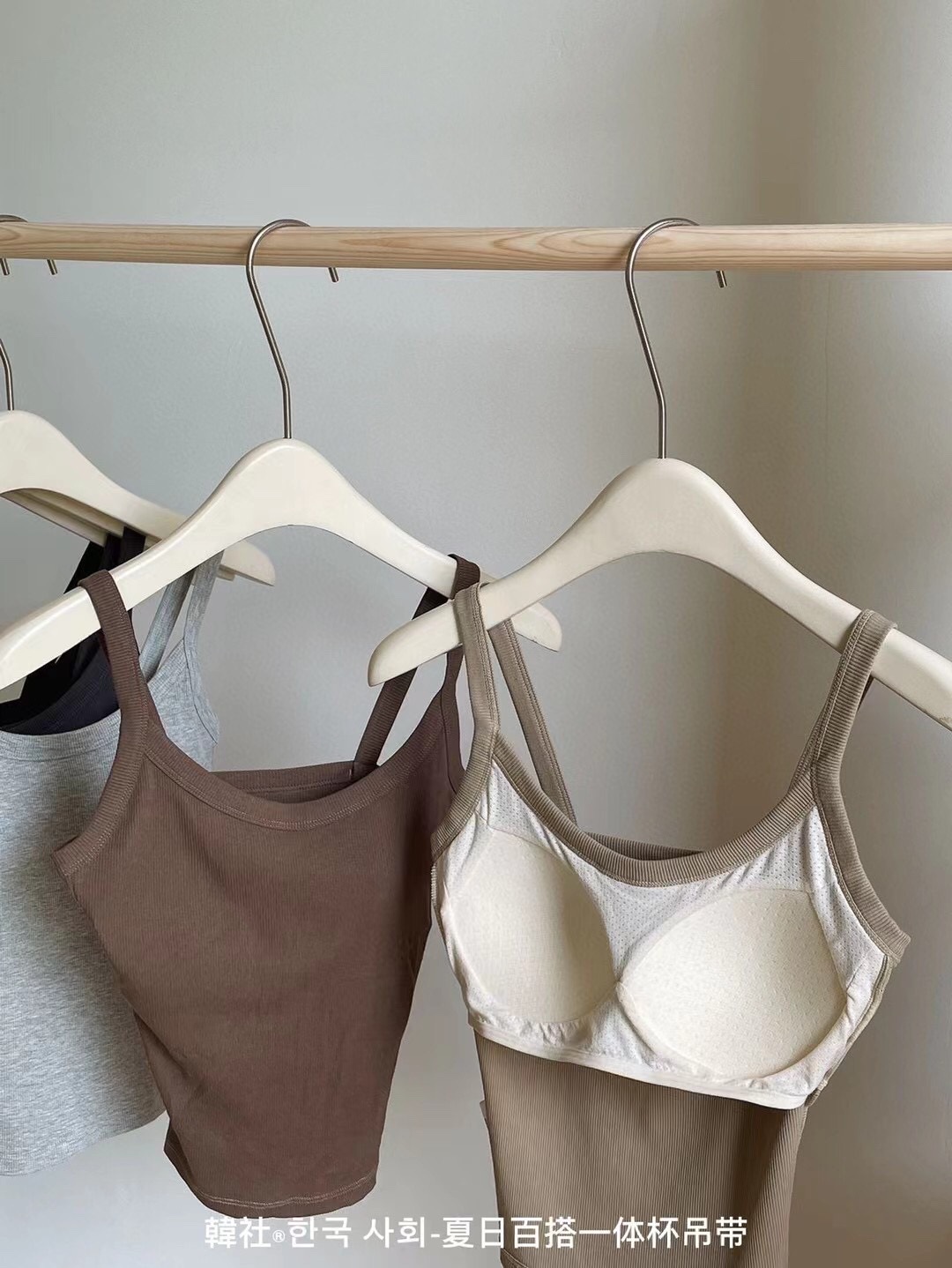 秋のキャミソール 女子学生 韓国風 セクシー リブ編み 綿 胸パッド付き 露出防止 横胸カバー ノースリーブ キャミソールタイプ