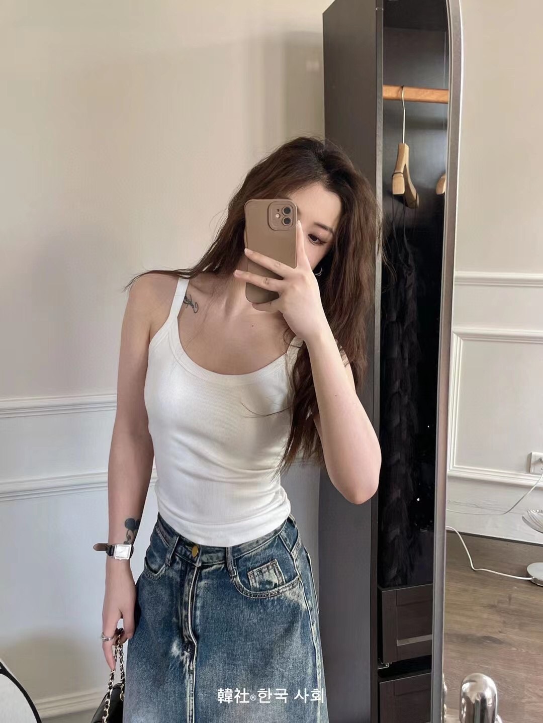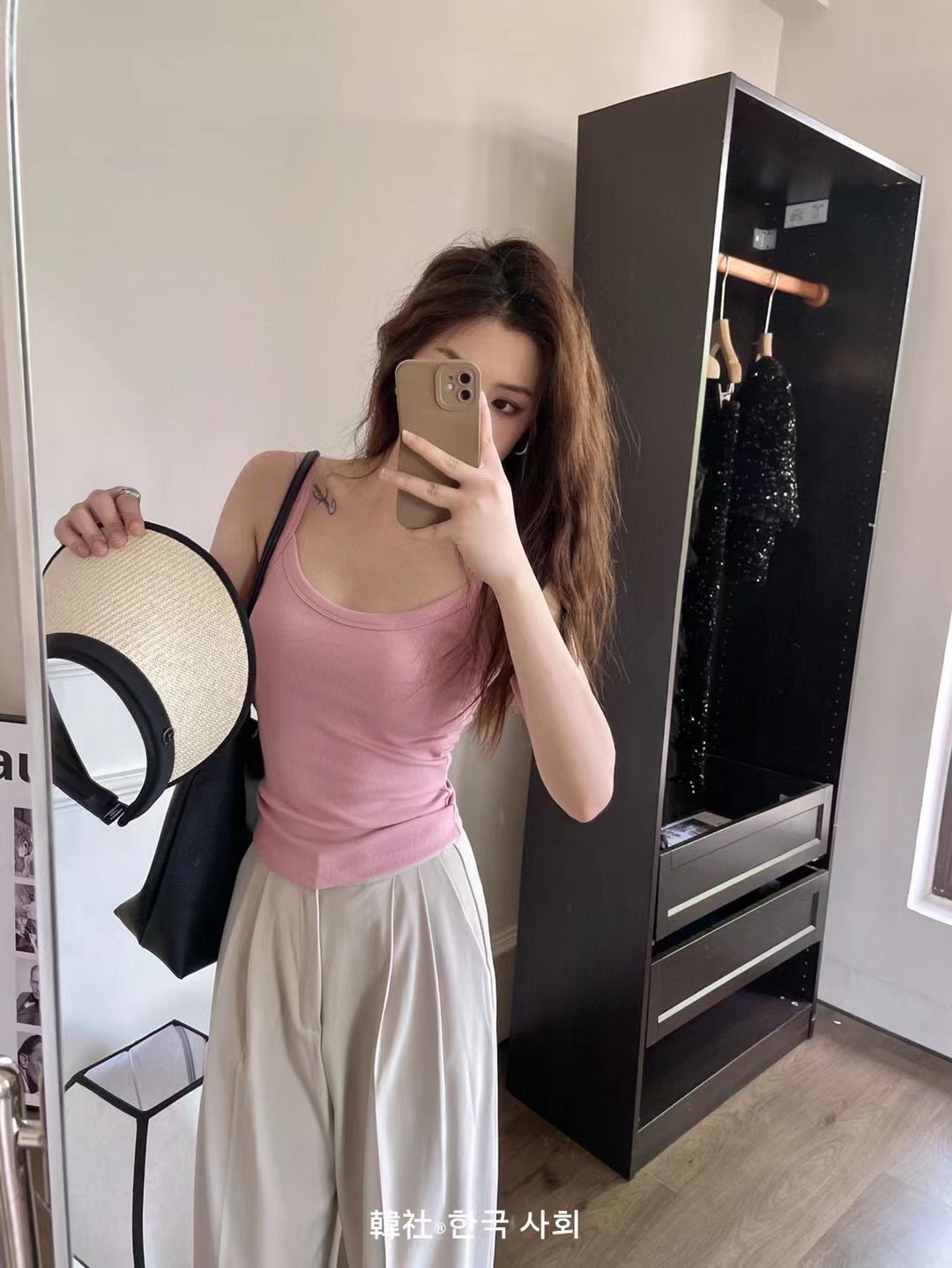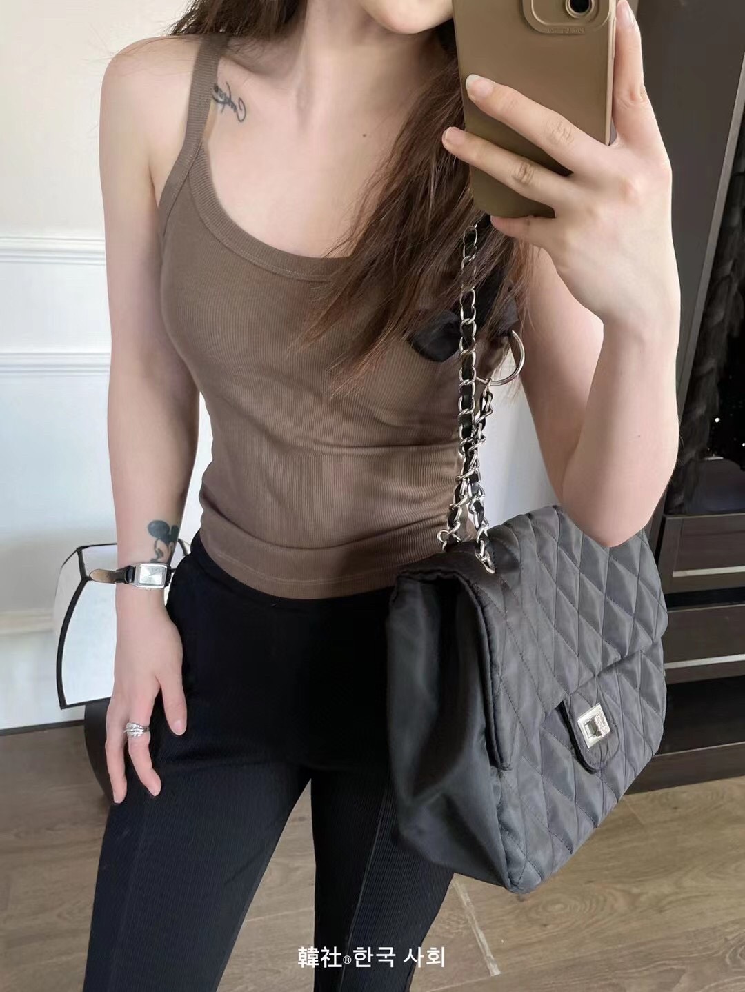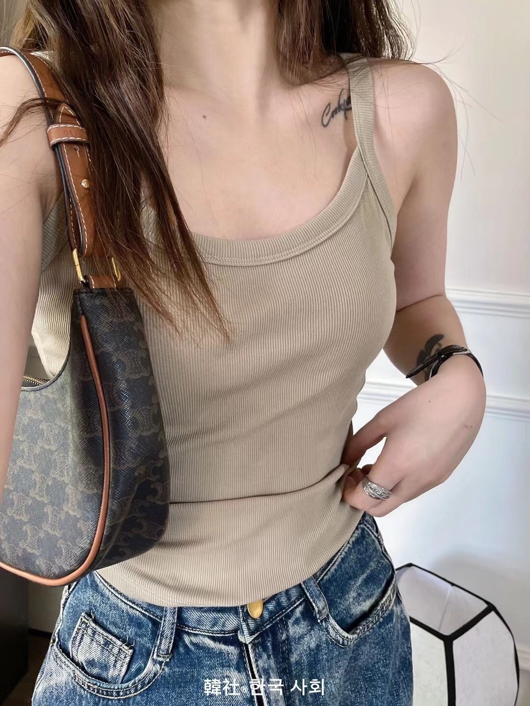 秋のキャミソール 女子学生 韓国風 セクシー リブ編み 綿 胸パッド付き 露出防止 横胸カバー ノースリーブ キャミソールタイプ