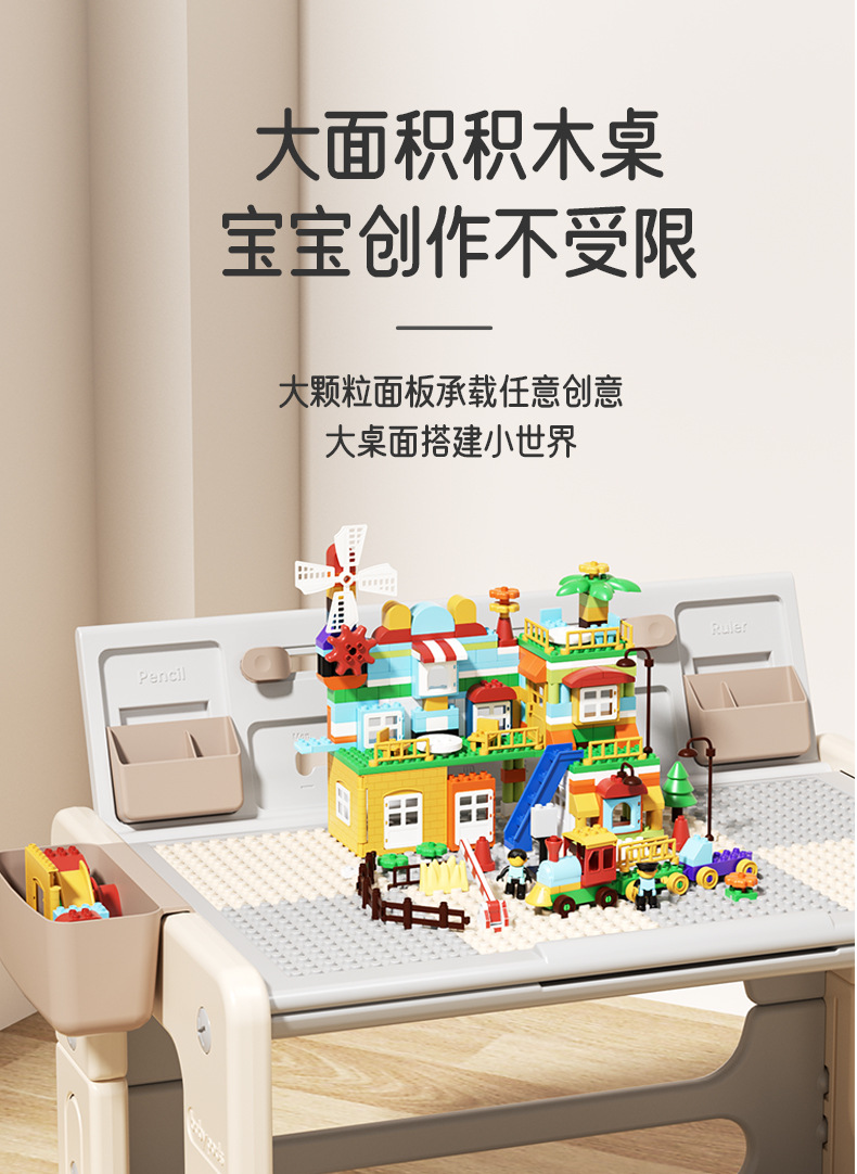 Baby viva子供多機能積み木テーブル赤ちゃん知育大粒積み木ゲームテーブル折り畳み広いデスクトップ