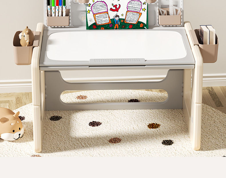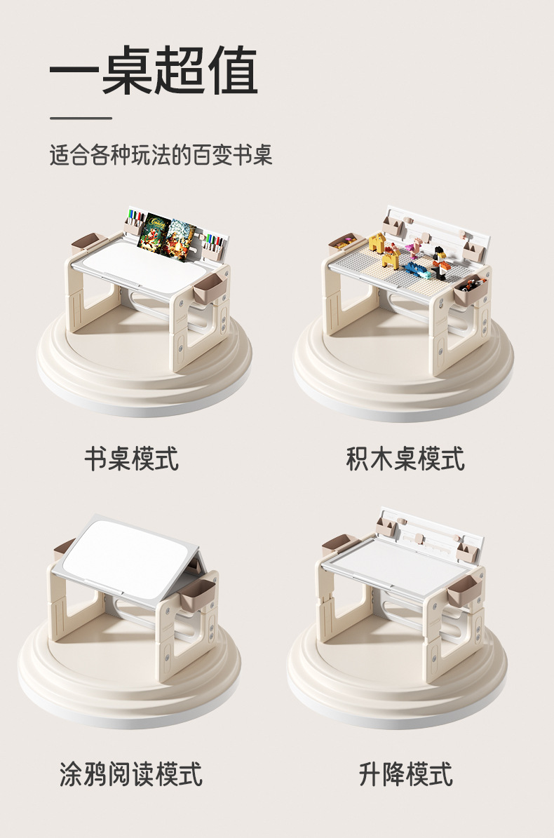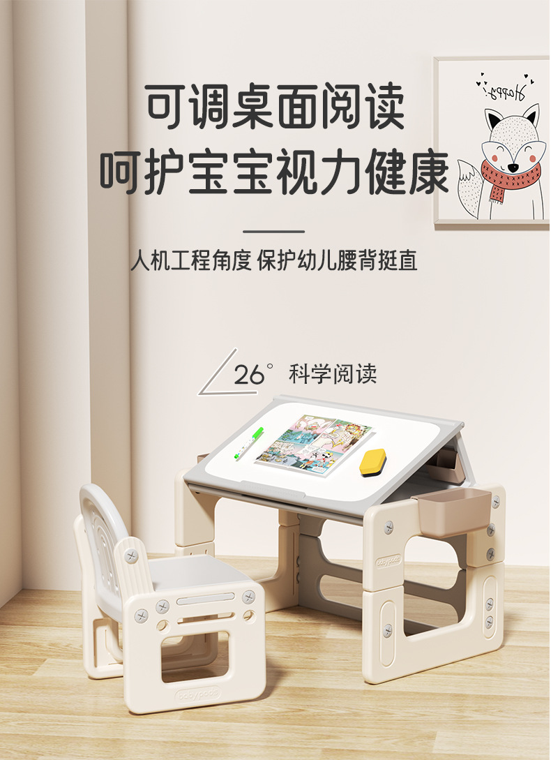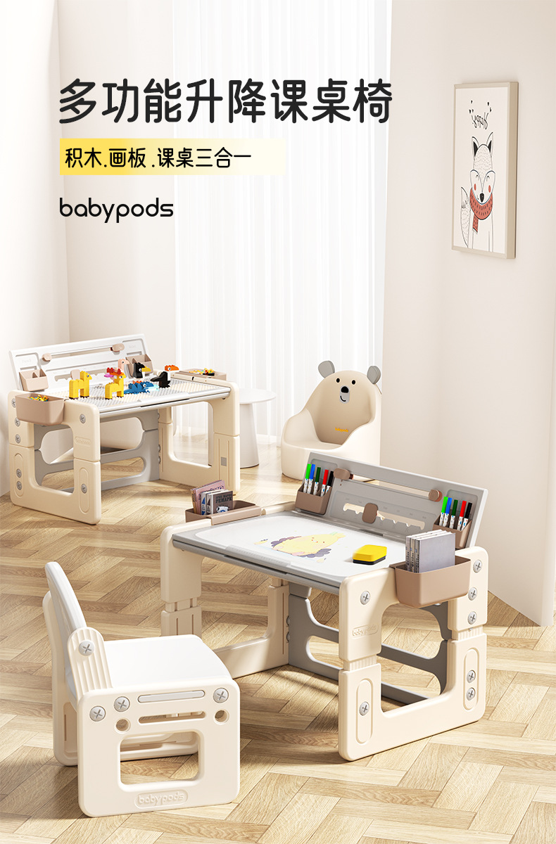本物のベビーポッド子供用学習机椅子セット、昇降式学生用学習机、赤ちゃん用多機能積み木テーブル