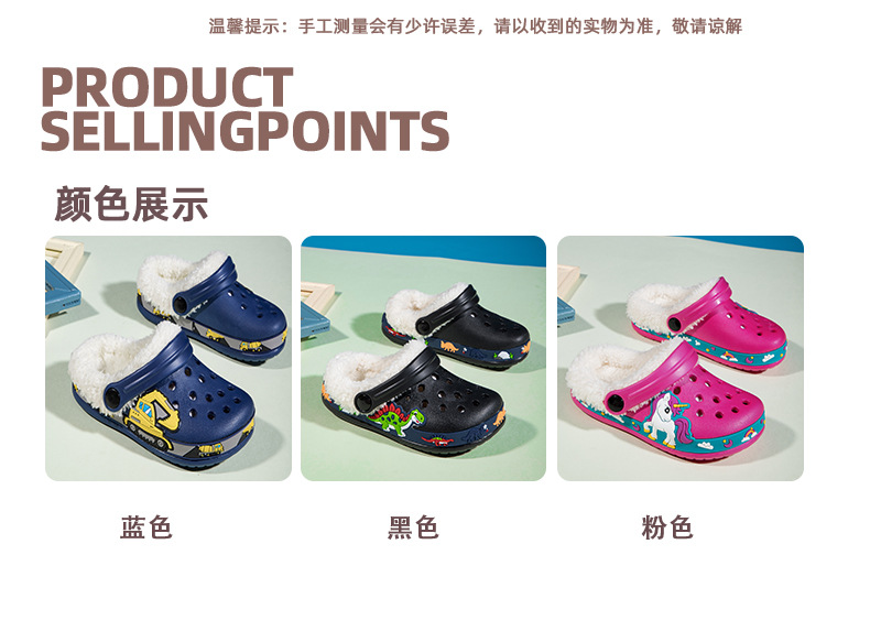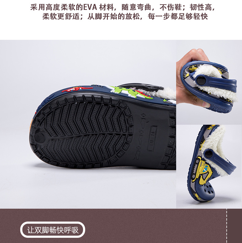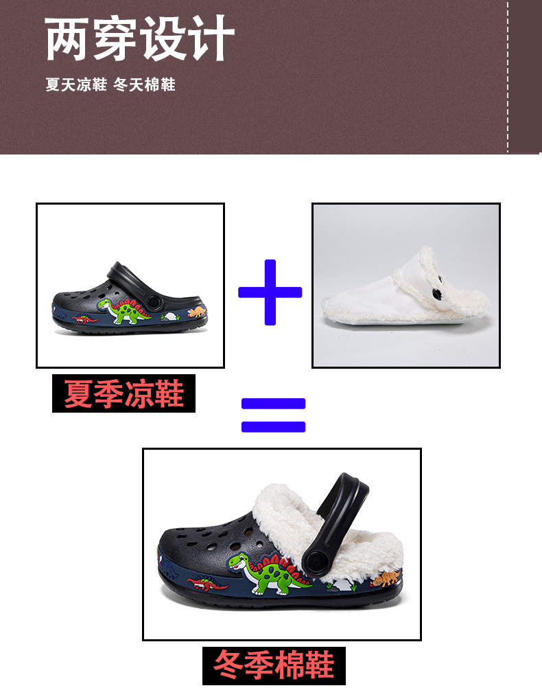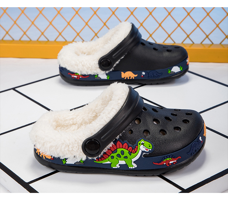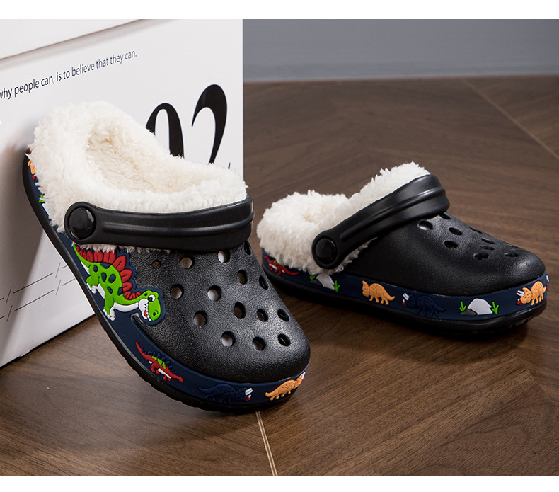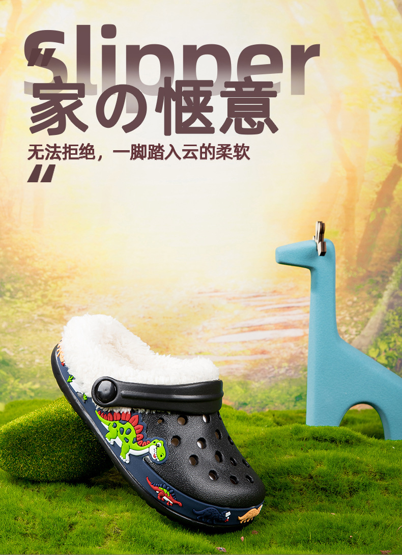クロスボーダー児童ベルベット洞靴秋冬男女児童EVA綿スリッパ恐竜ショベル取り外し可能綿モップ