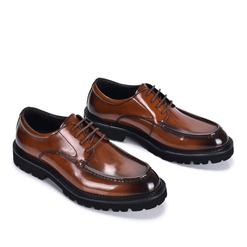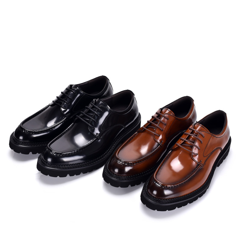 英倫レトロ手作りカジュアル革靴男本革厚い底結婚新郎靴三継手ビジネス正装ダービー靴