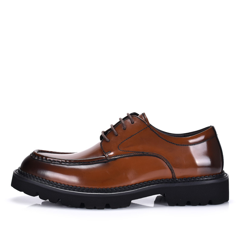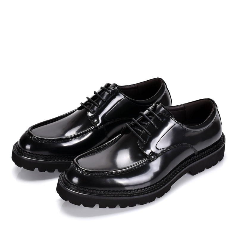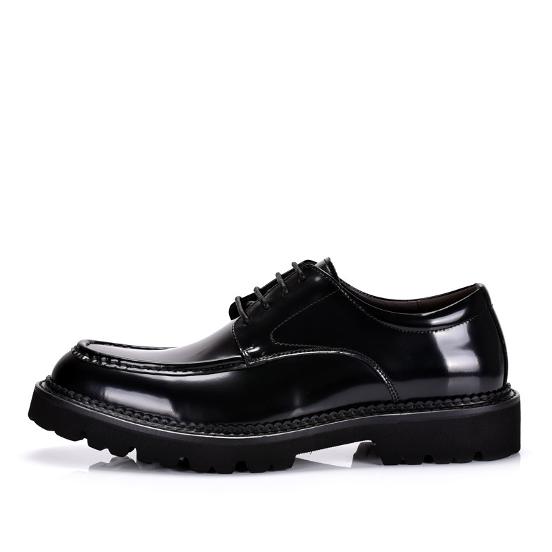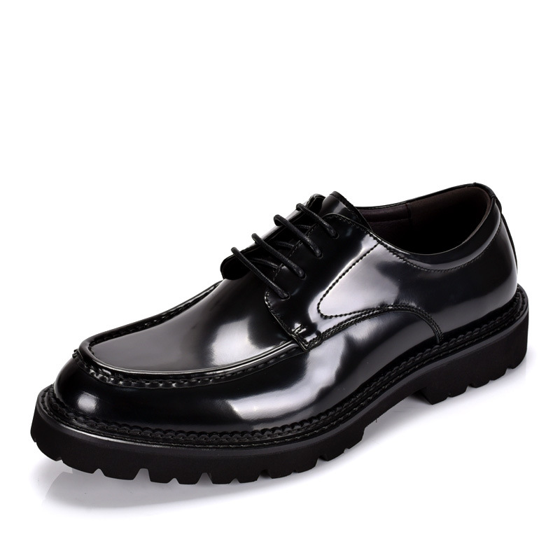 春と秋の韓国の靴の大きい靴の男性の本革の丸い頭の英倫のカジュアルな厚い底の漆の皮のスーツの結婚の靴のファッション靴