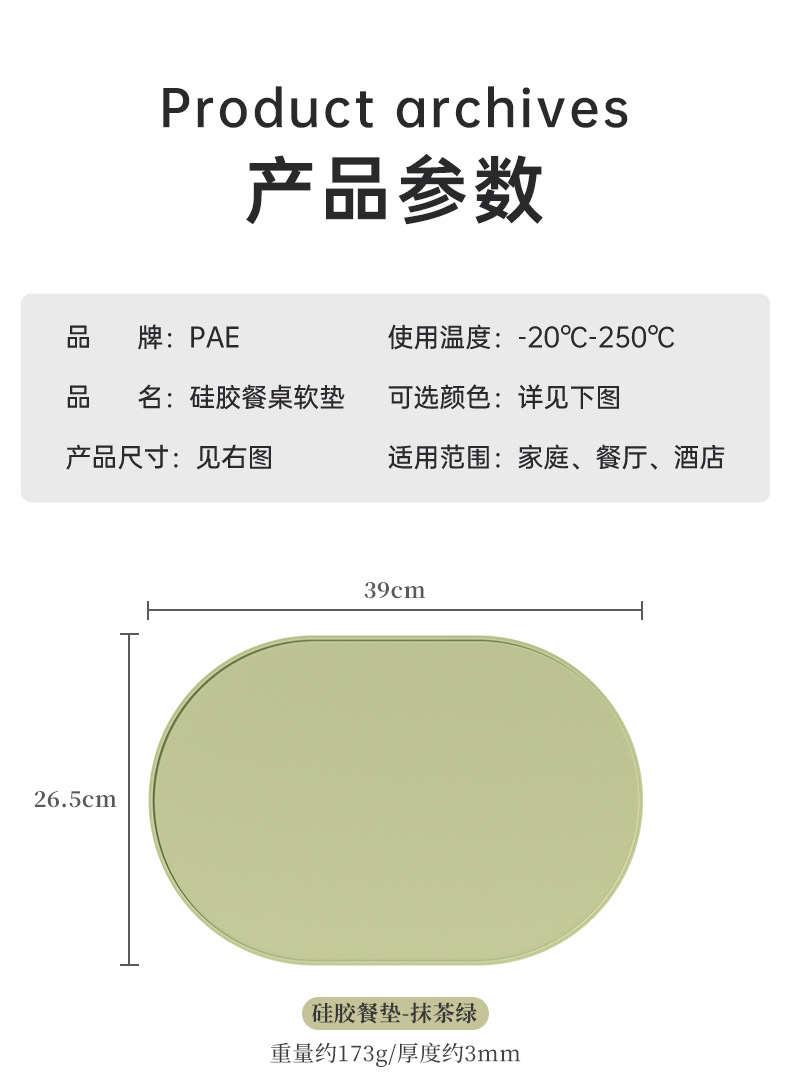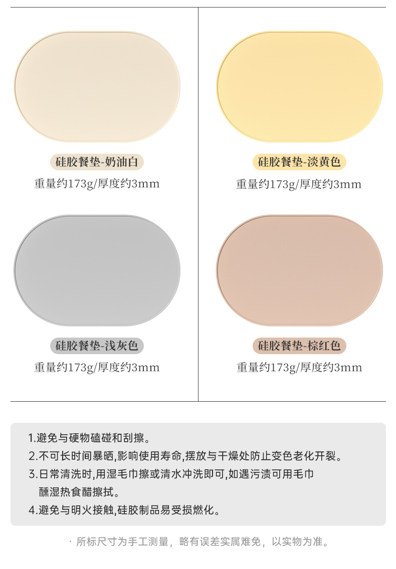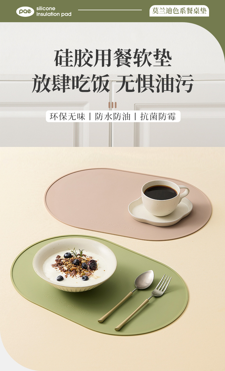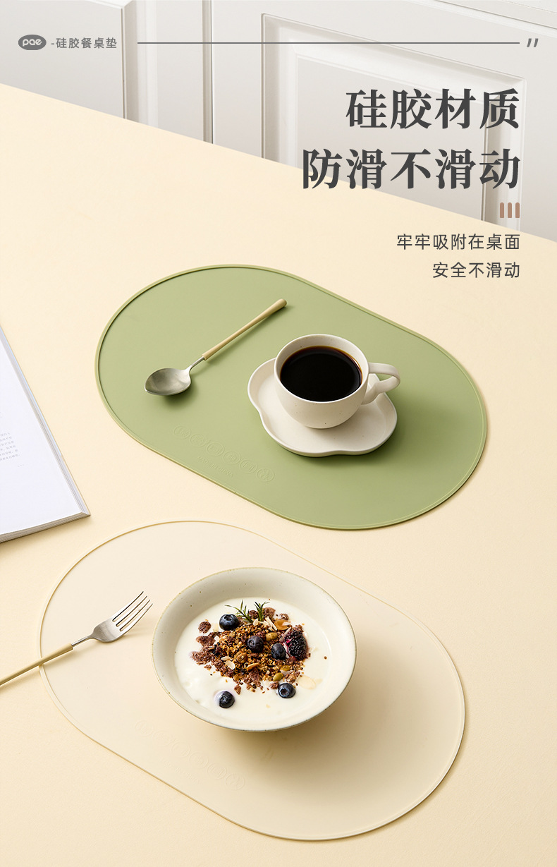 新款椭圆形硅胶餐垫硅胶隔热垫餐厅厨房装饰装饰硅胶垫防滑易清洗