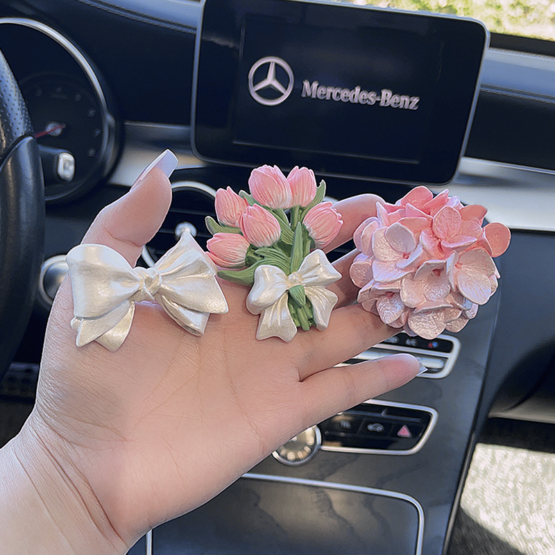 ピンクのアジサイの車のアロマストーンの女性の車内アクセサリーの車の噴出口はins風のプレゼントの花を挟みます。