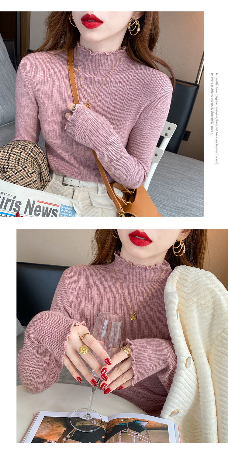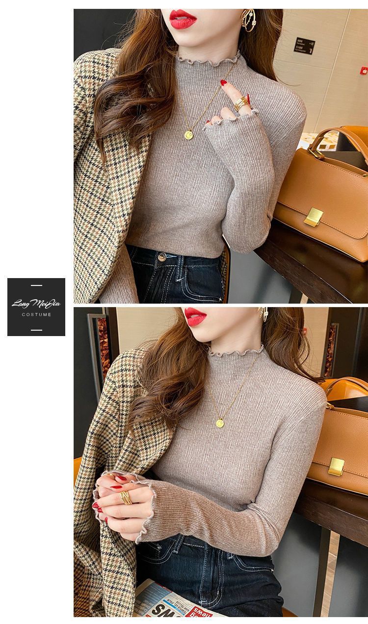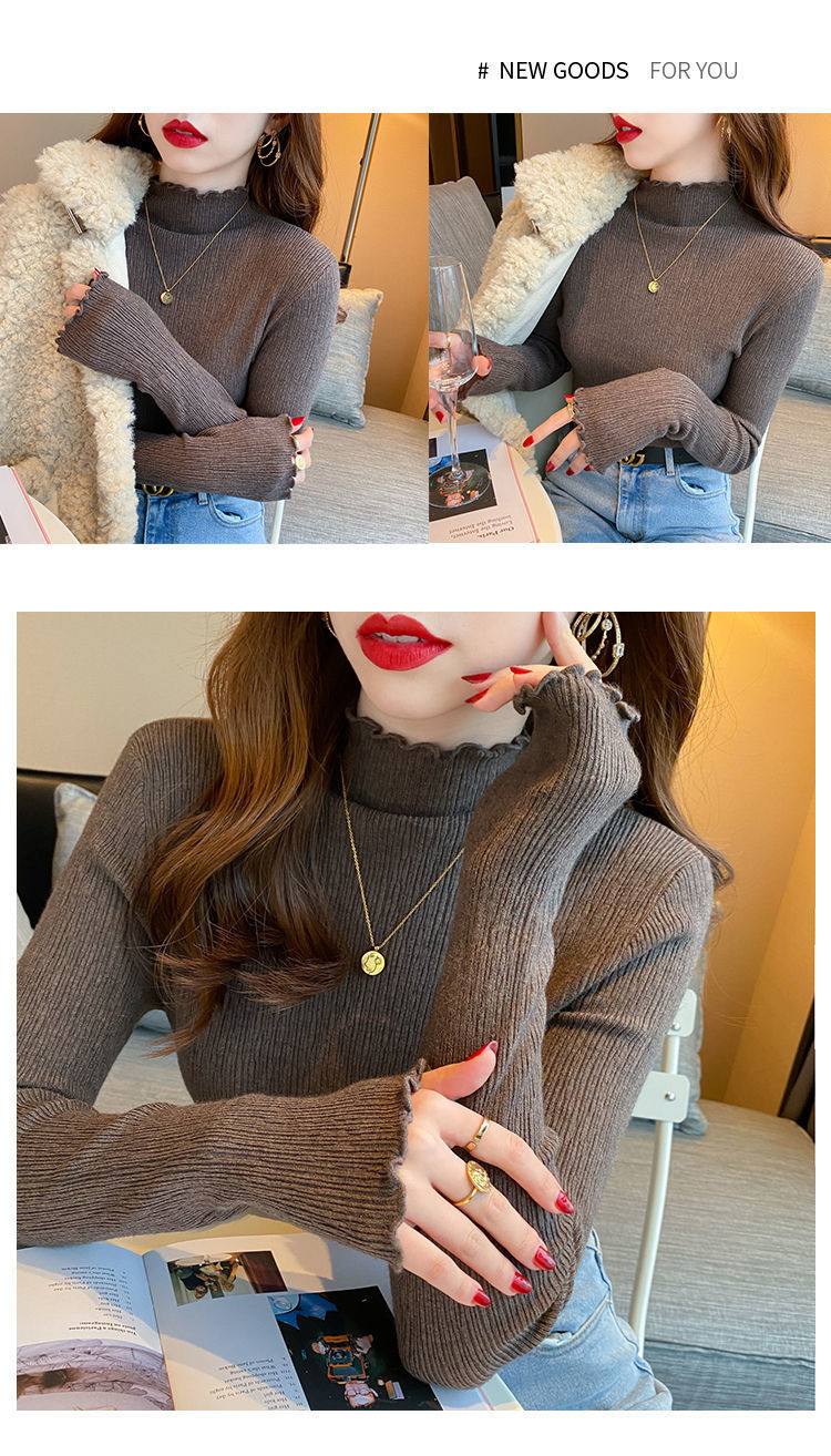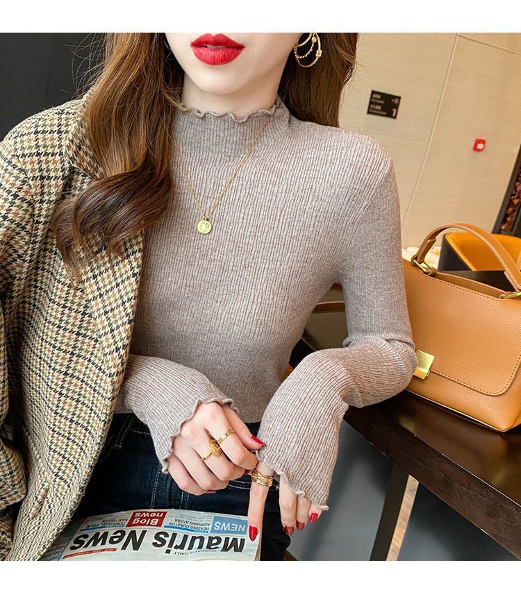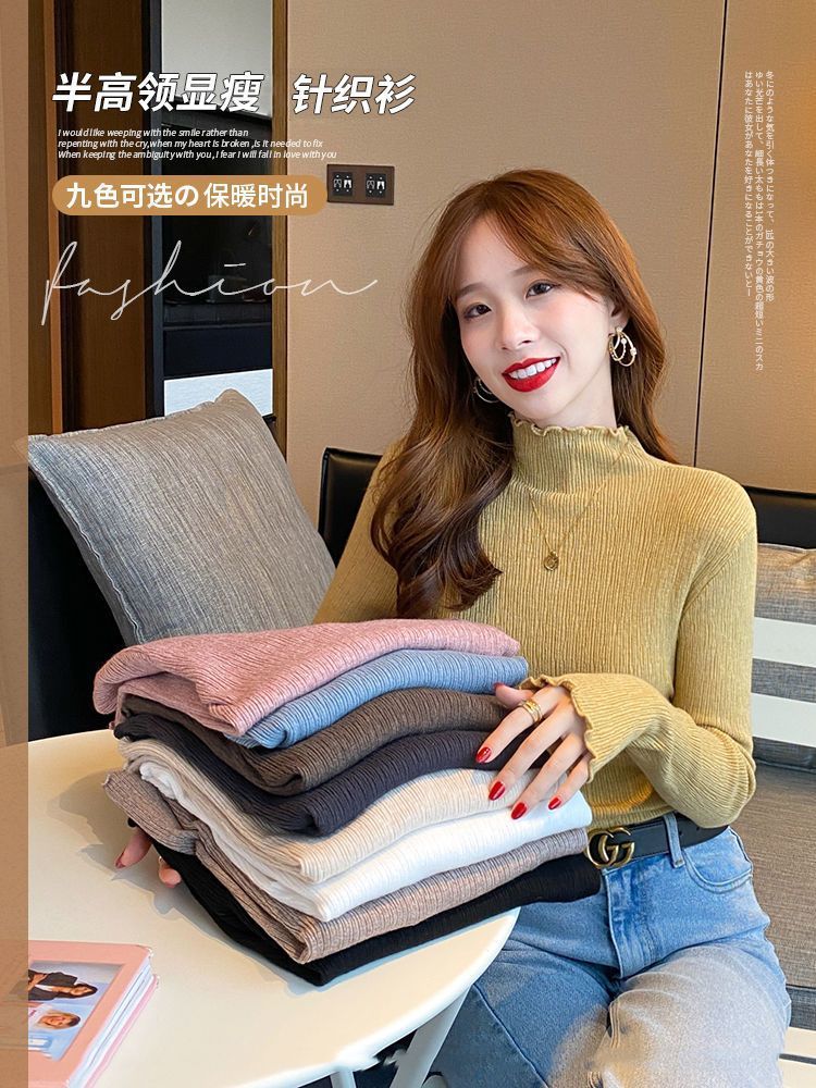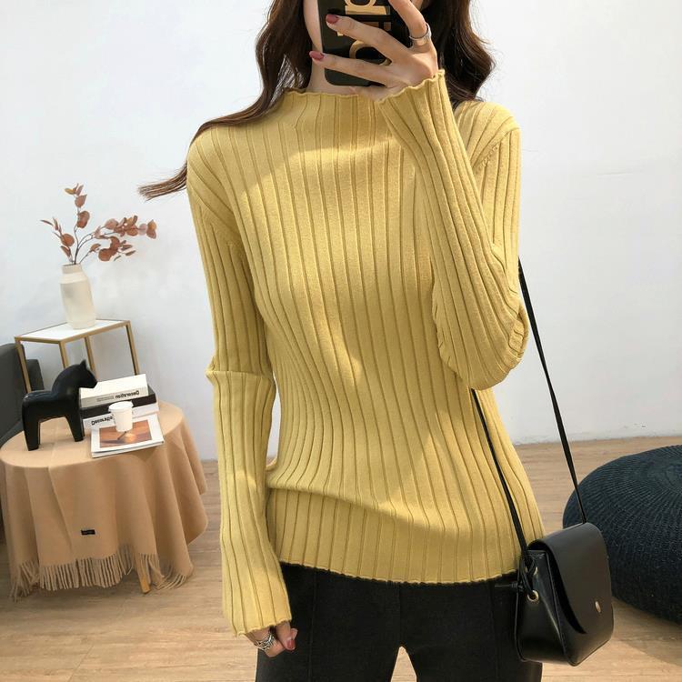 絶美の木の耳元の筋の理感の底のシャツのピットのセーターの女性の秋冬の半高襟の修身するメリヤスの上着